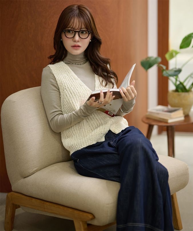 cotton blend low gauge knit vest