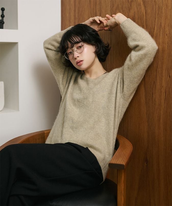 wool cashmere collared knit cardigan