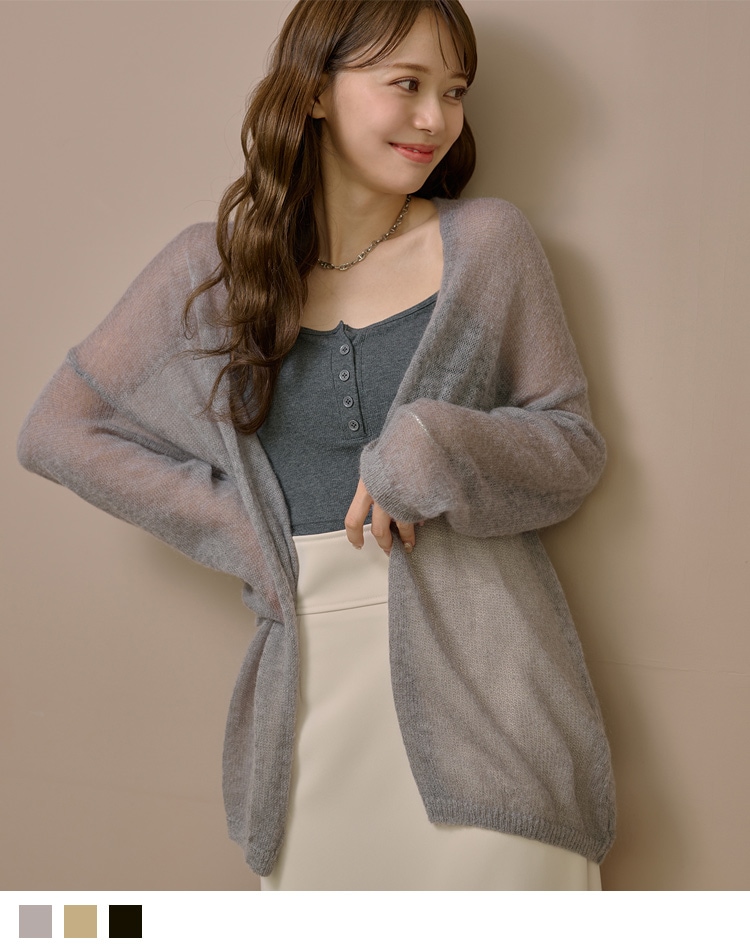 wool mohair buttonless knit cardigan