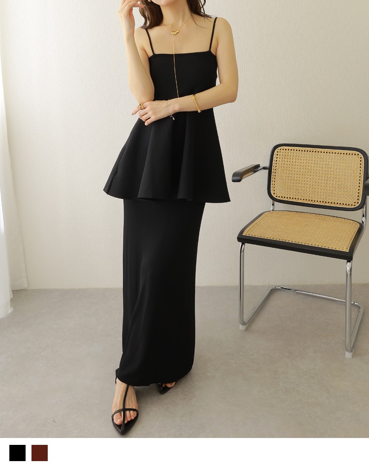 flare peplum camisole skirt setup
