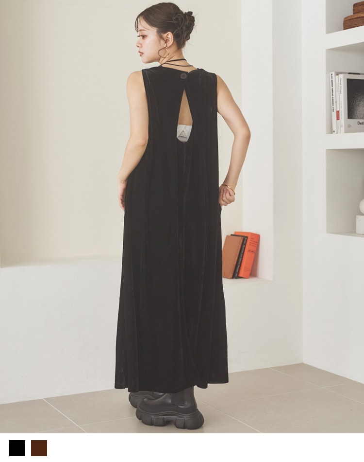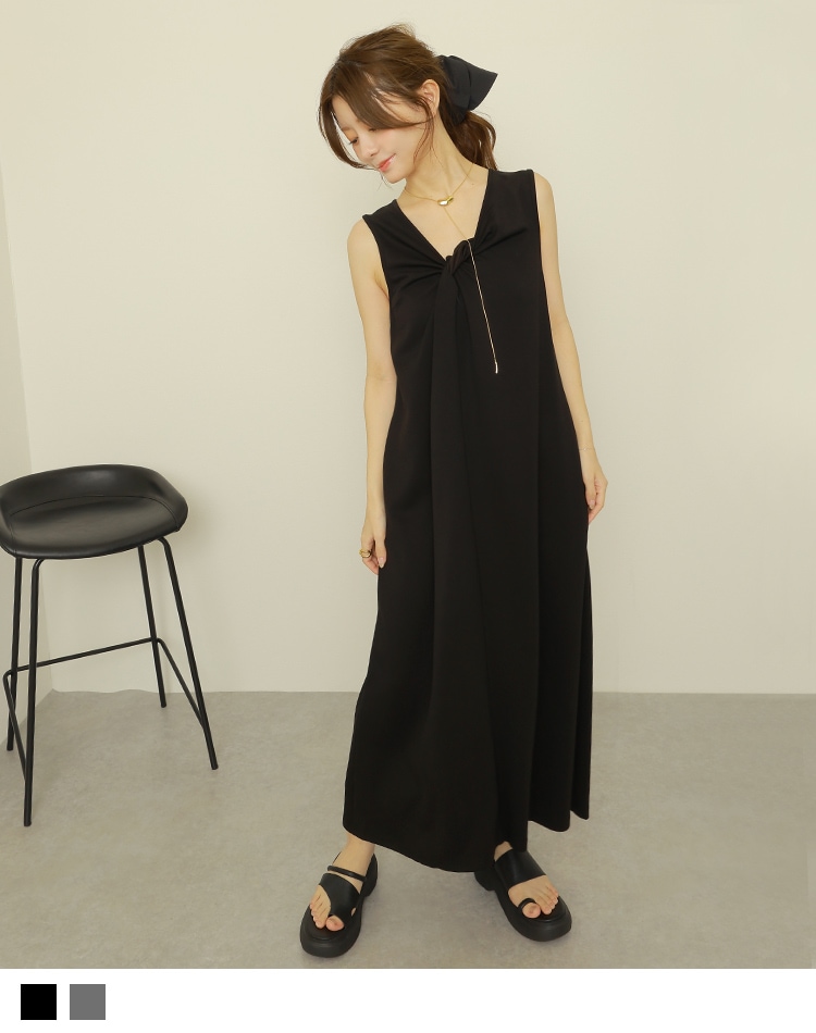 back ribbon sleeveless long dress