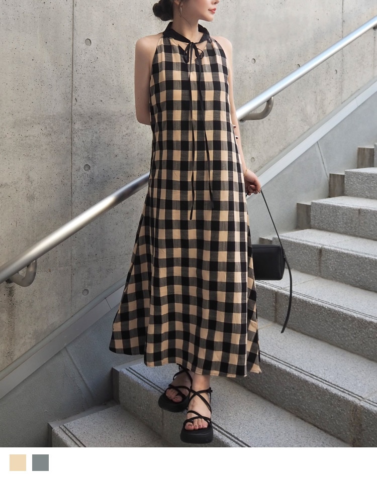 linen check camisole long dress