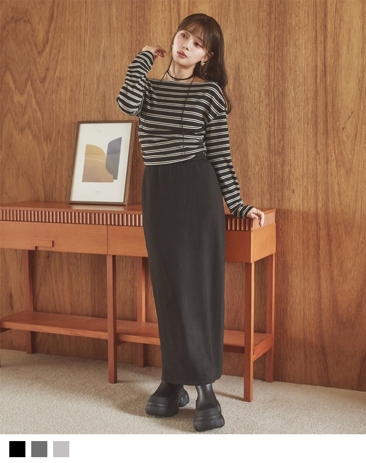 stripe volume sleeve long dress