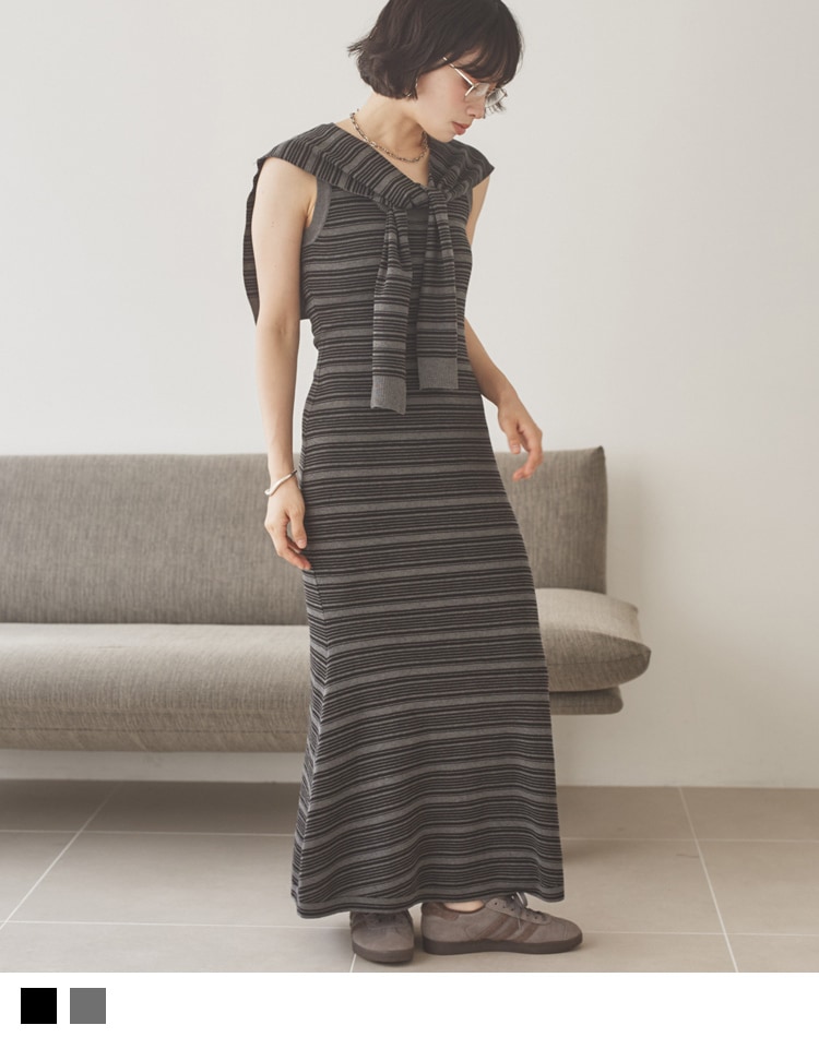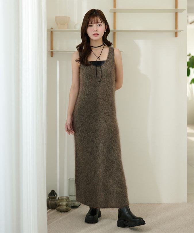 sleeveless lib knit long dress