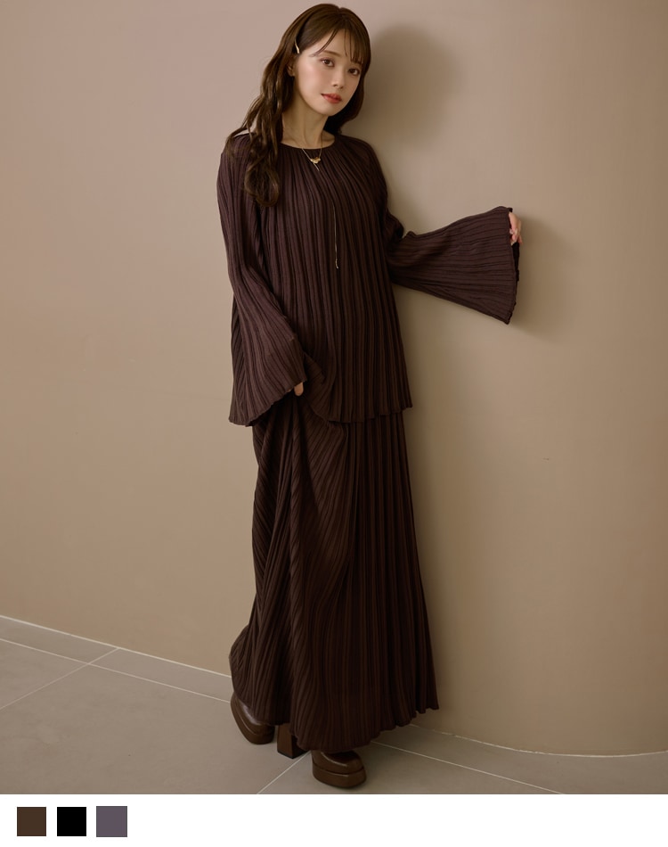 pleats bell sleeve knit set up