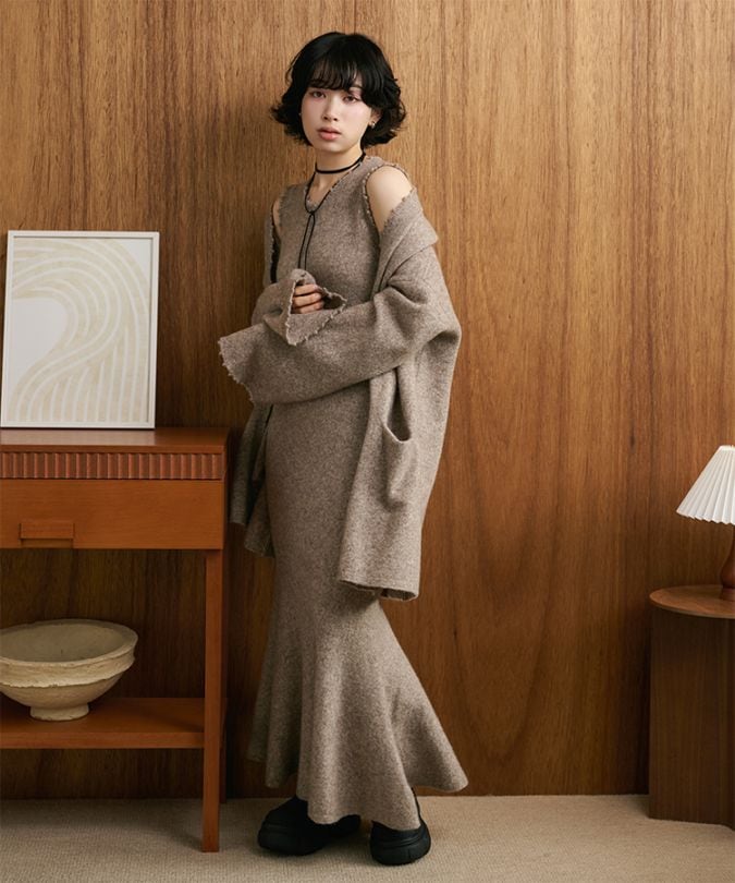 mermaid sleeveless long knit dress