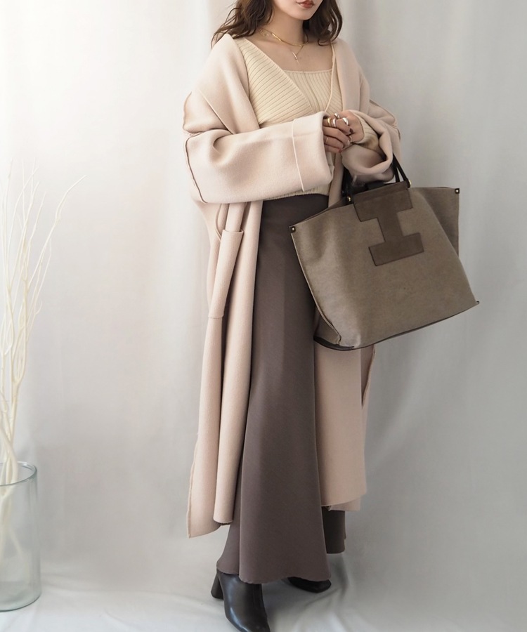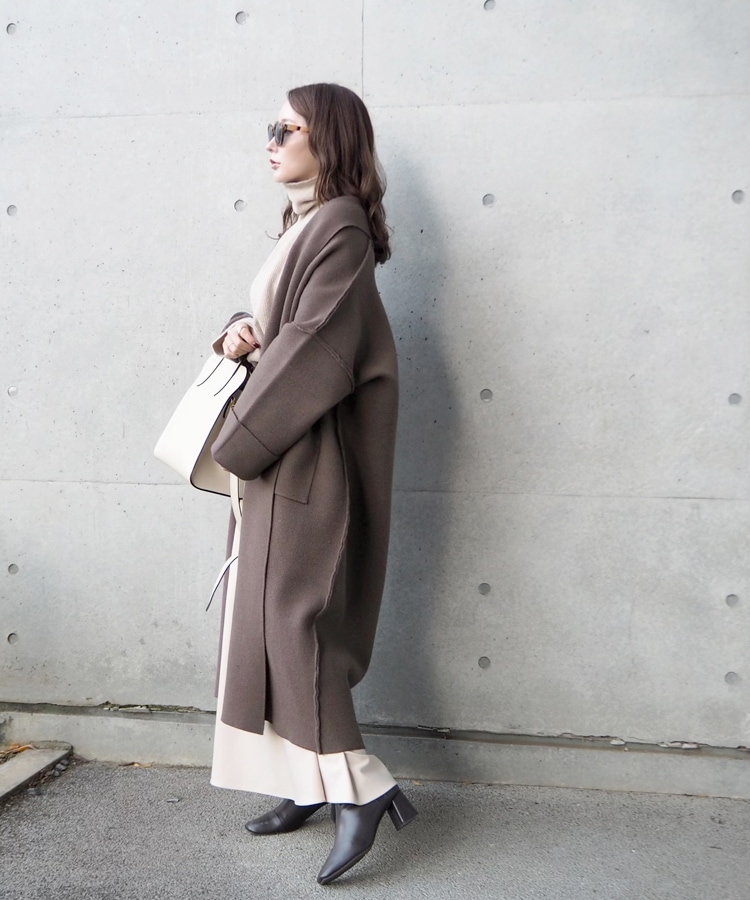 裾に少しフレア感を出して女性らしいシルエットも楽しめます。
