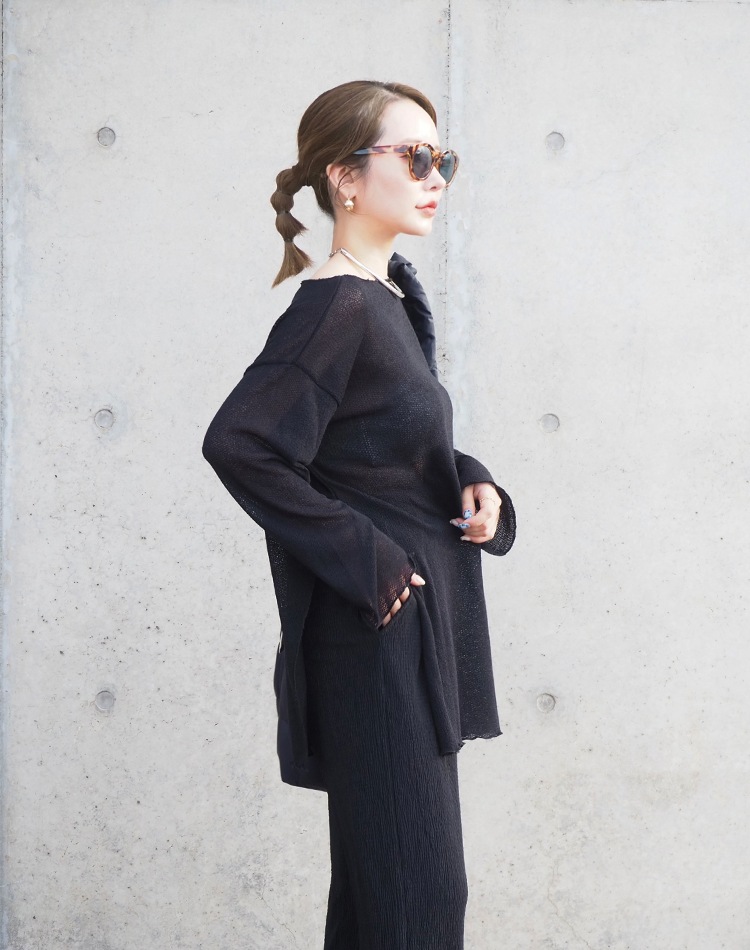 bell sleeve one shoulder knit