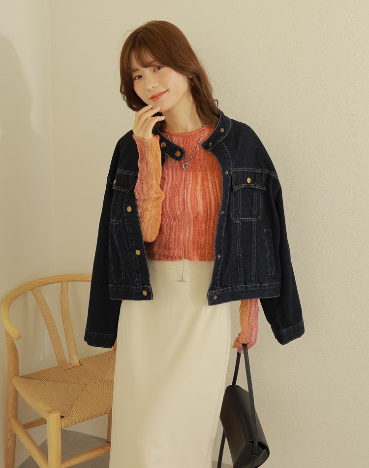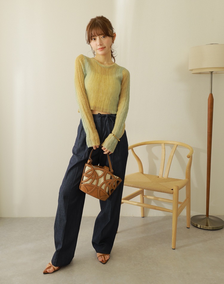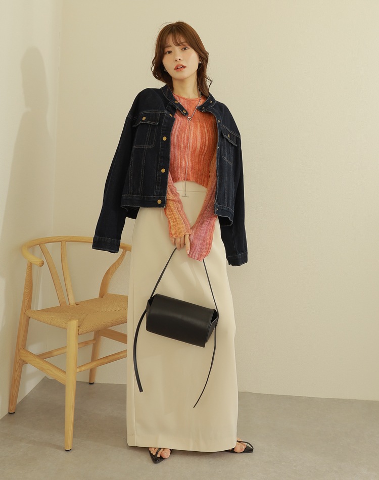今シーズントレンドのショート丈で、ハイウエストやワイドボトムとも好相性でコーディネートが可能。