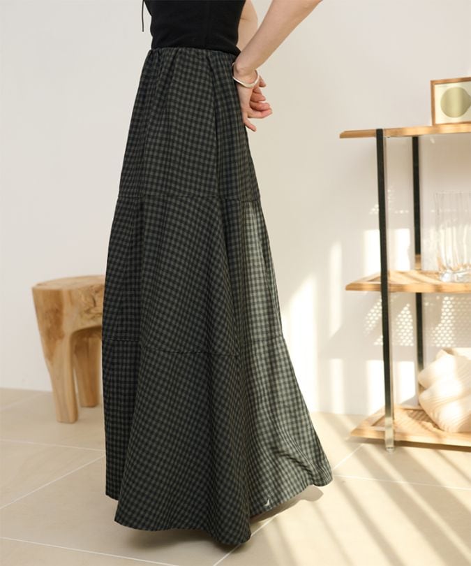 different material patchwork long skirt