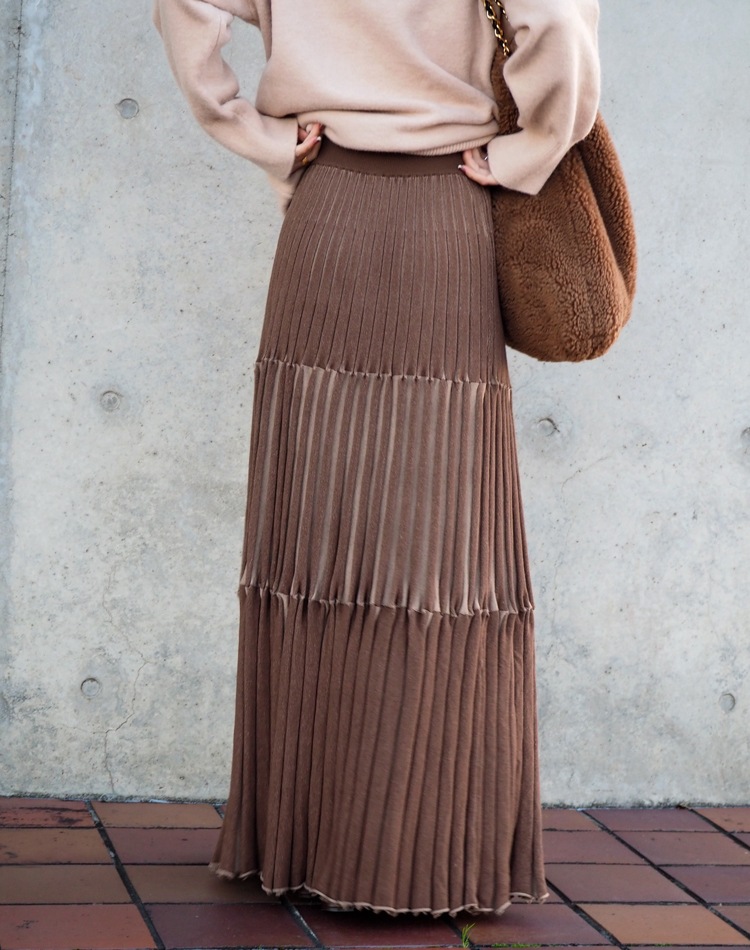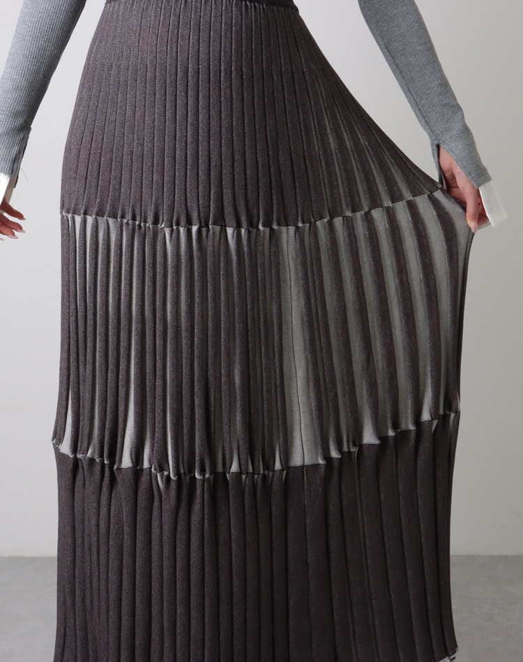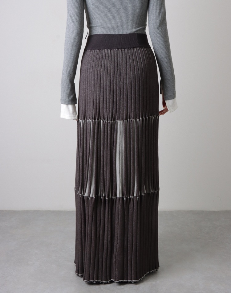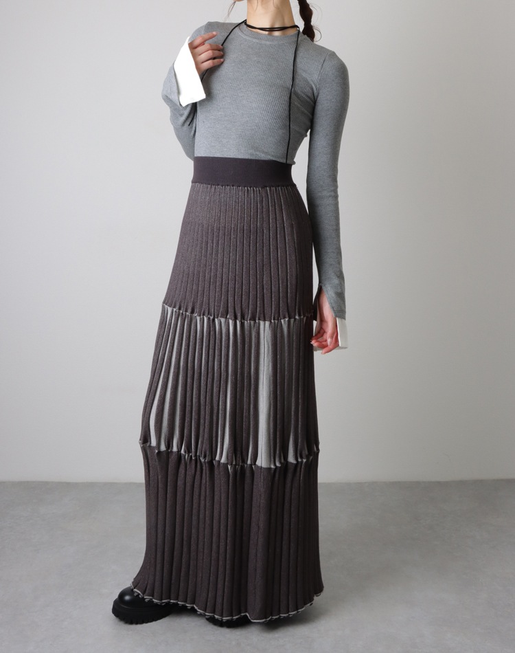 inverted pleats ribbon long skirt