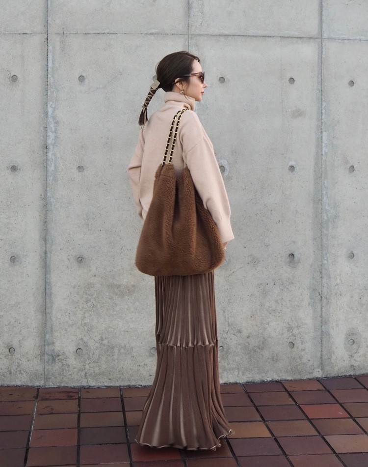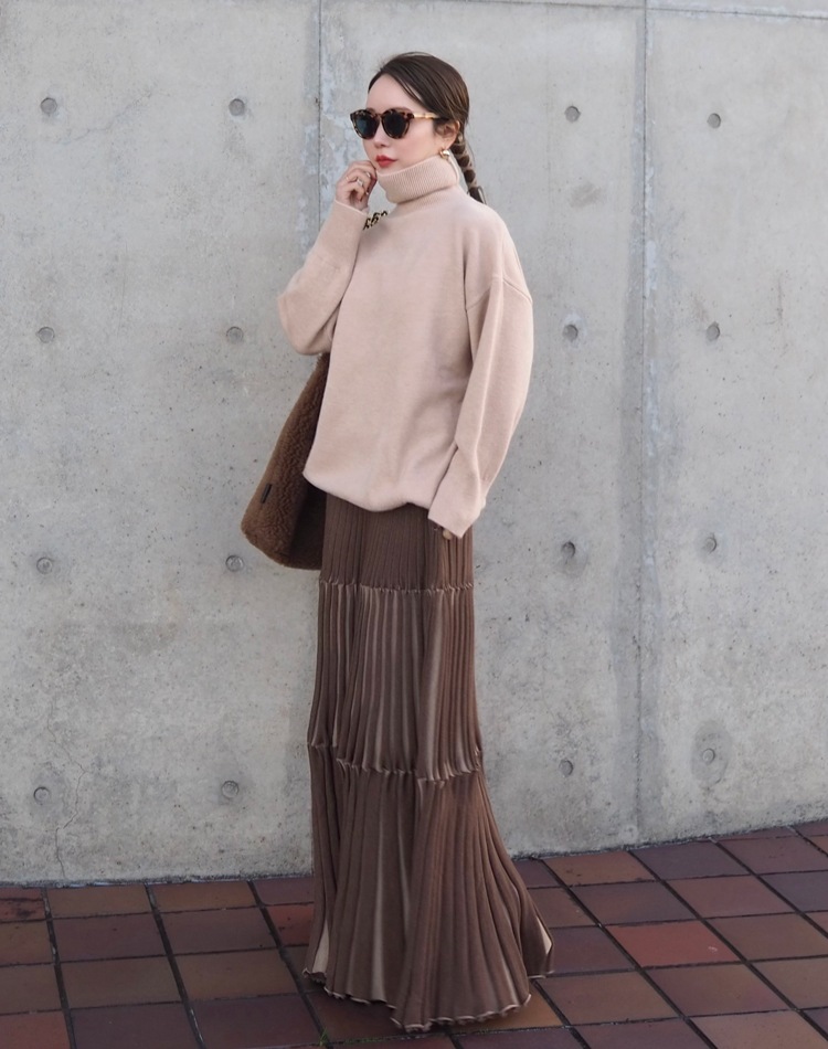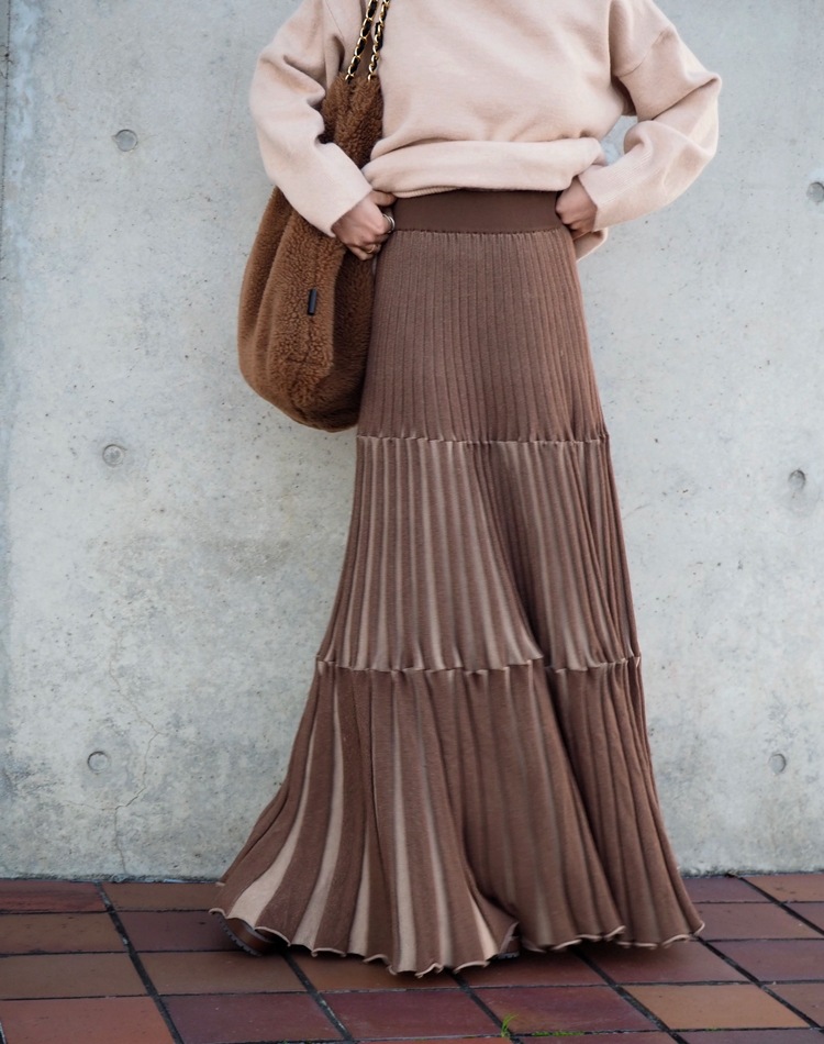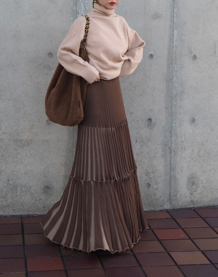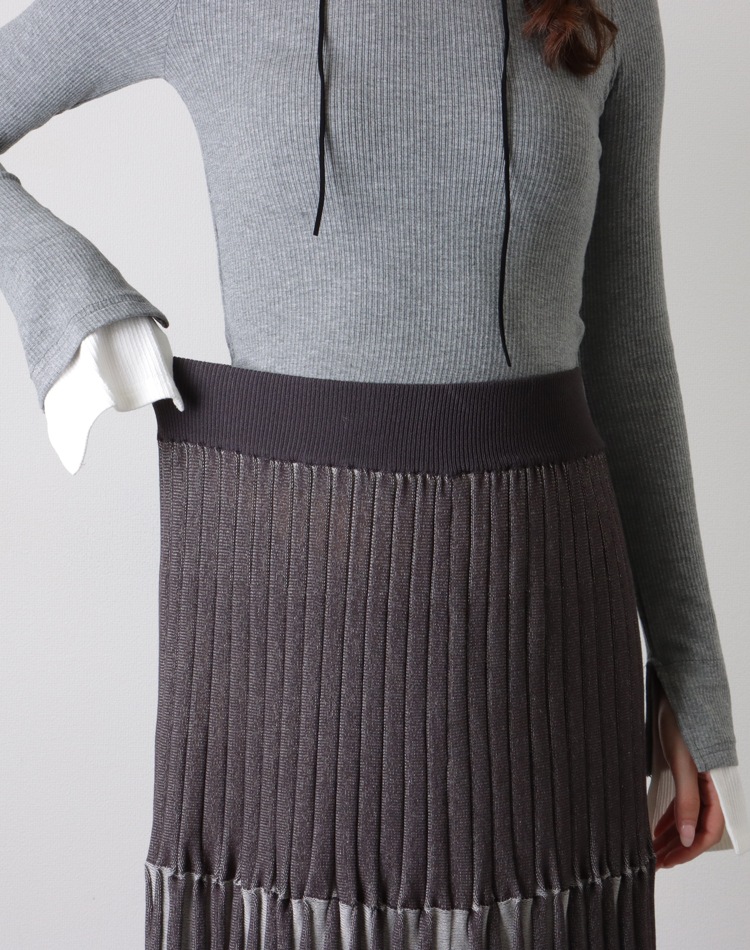 inverted pleats ribbon long skirt