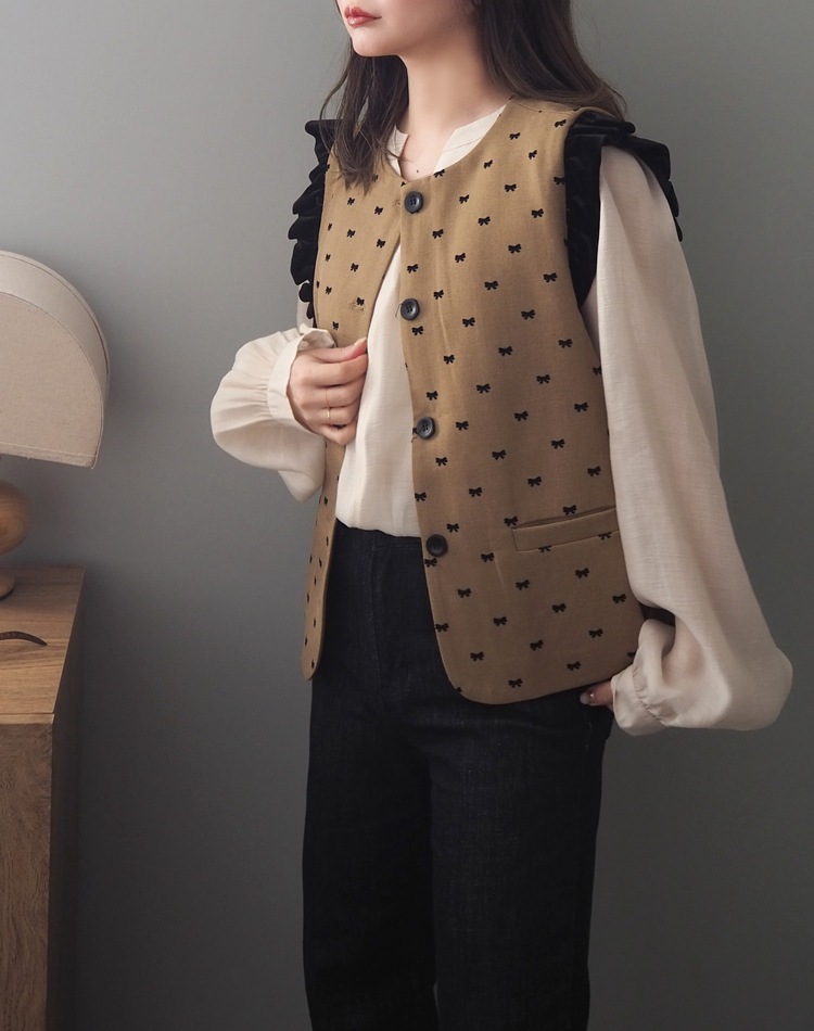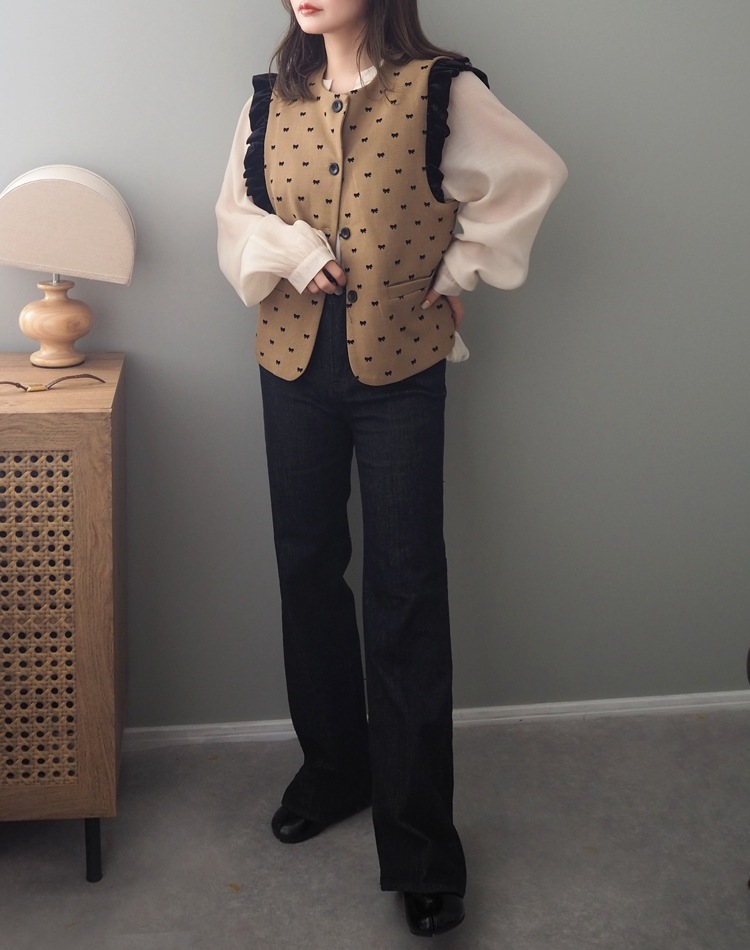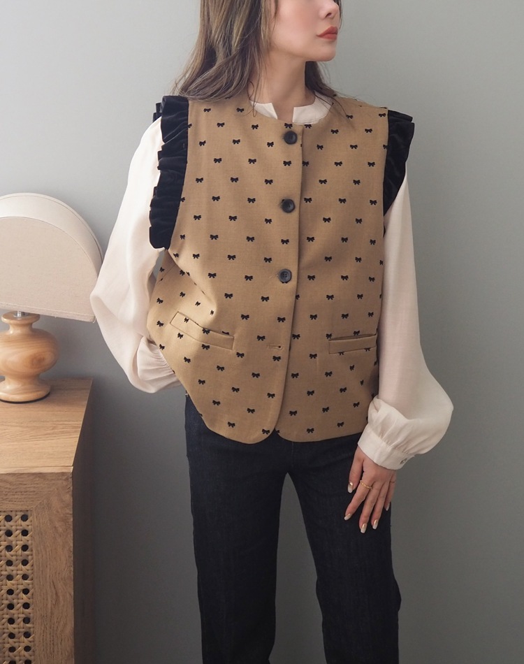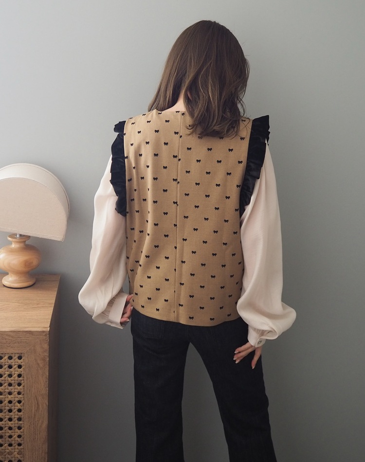 全体に散らしたリボンドット柄が、コーデに可愛らしさを添えてくれる1枚です。