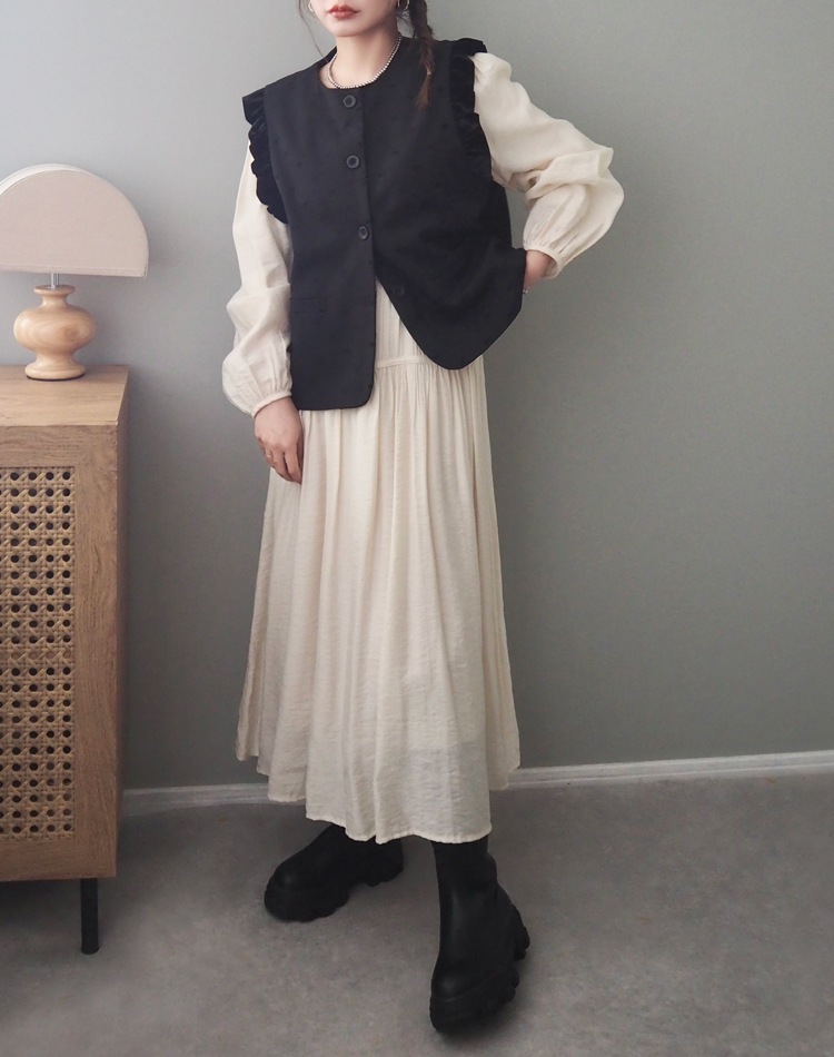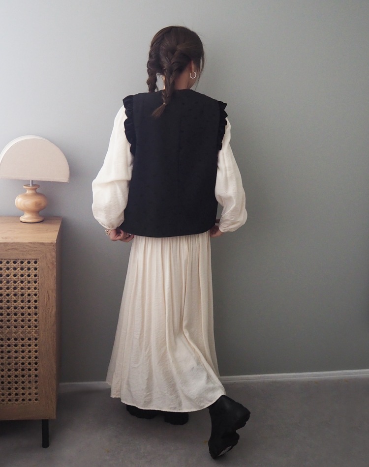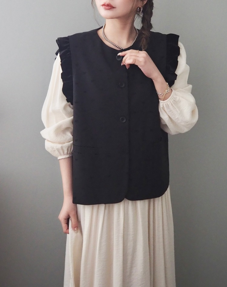 いつもの装いにクラシカルな表情をプラスしてくれるベスト。