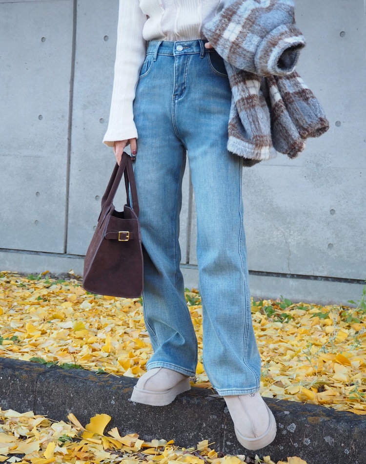 skirt layered flare denim pants