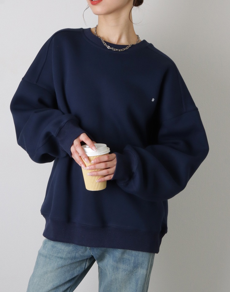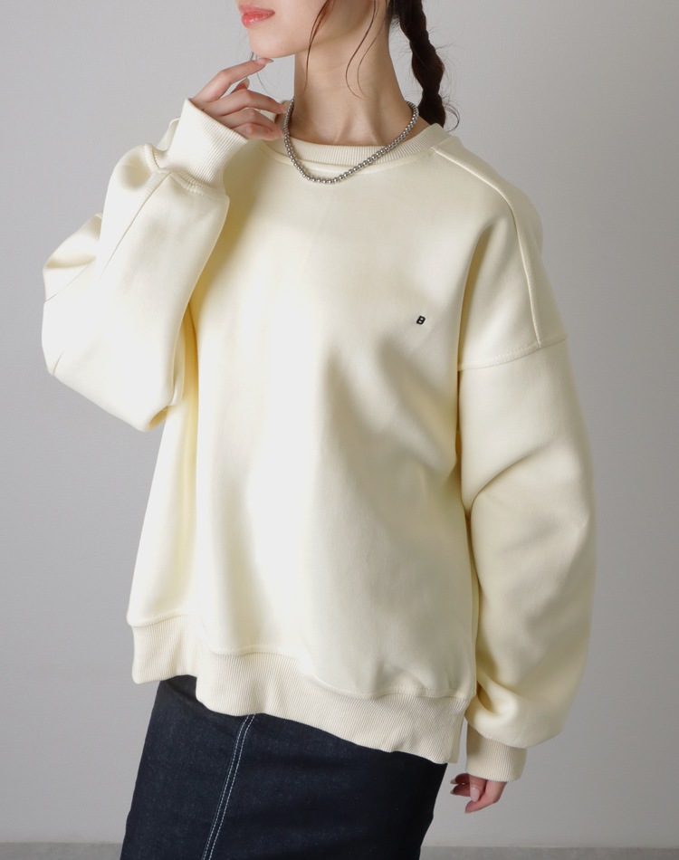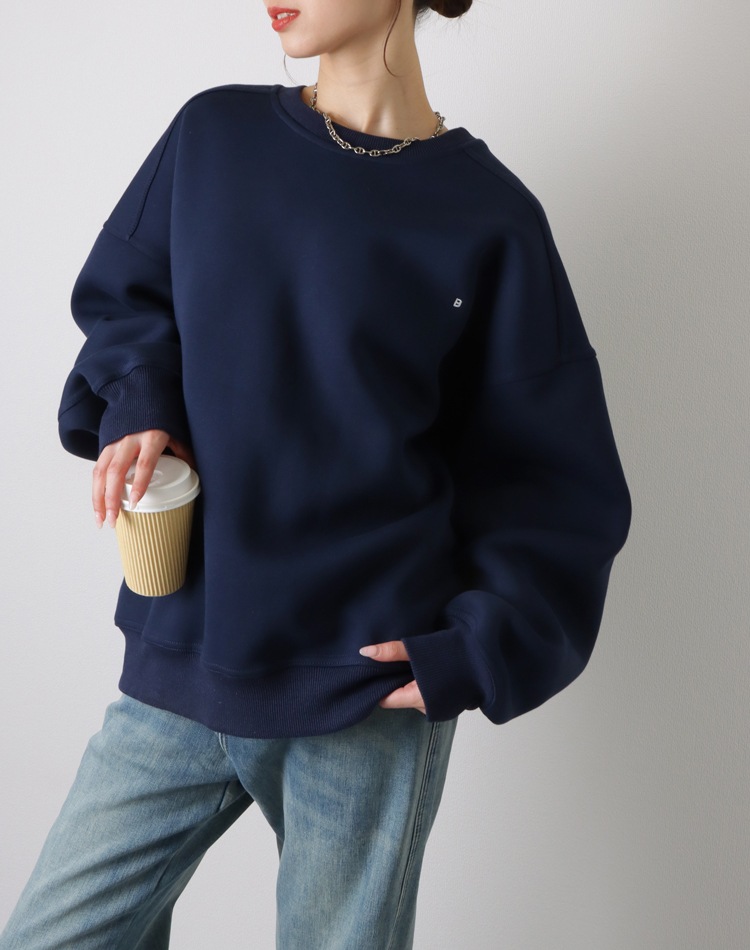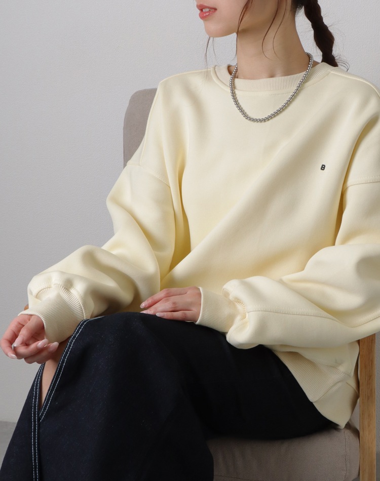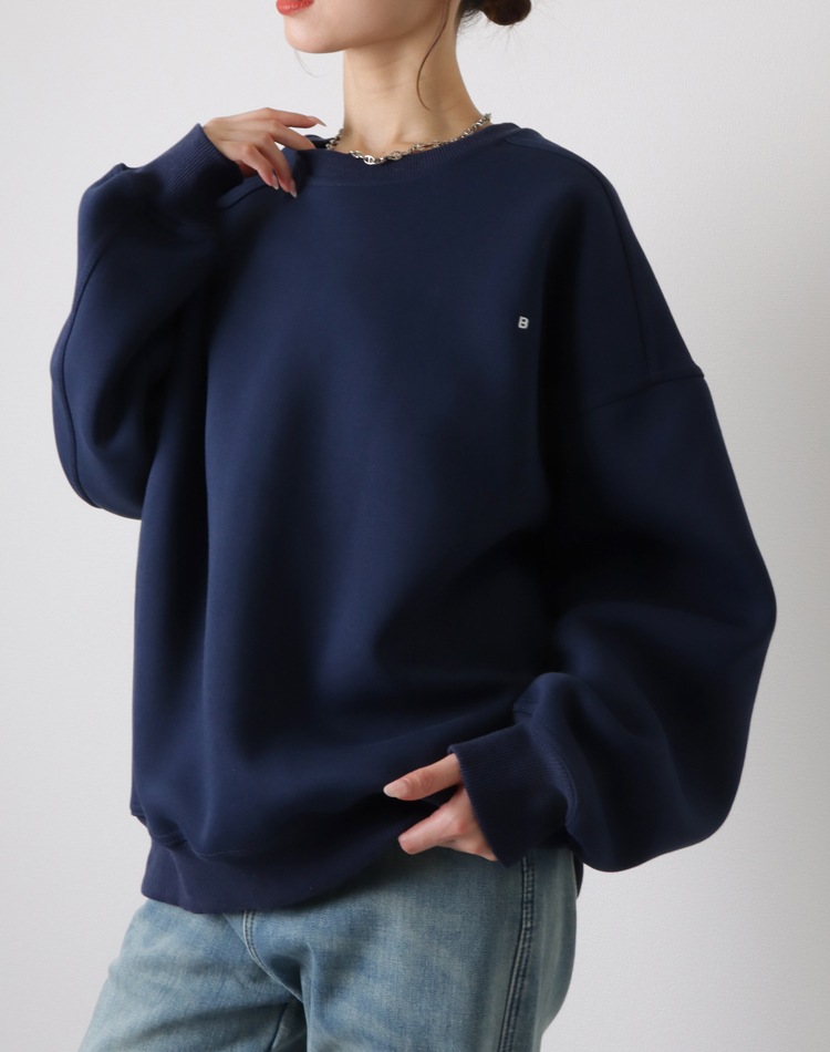 小さめの刺繍ロゴがポイントのオーバーサイズスウェット。