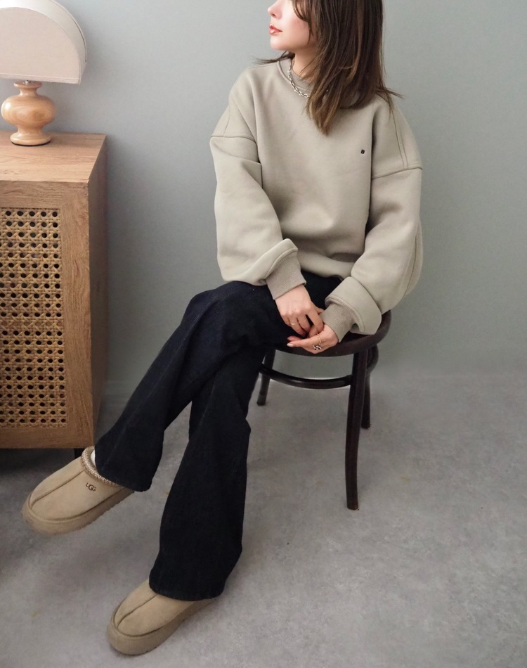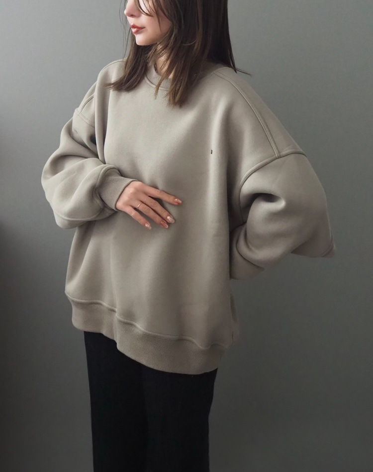 裏起毛のふっくらとした生地感が暖かく、これからの季節にぴったり。絶妙なカラーが秋冬の重たくなりがちなコーディネートに華やかさをプラスしてくれう1枚です。