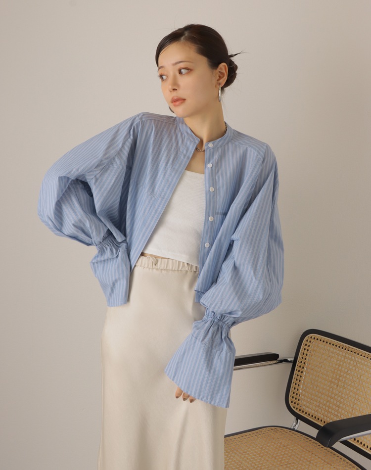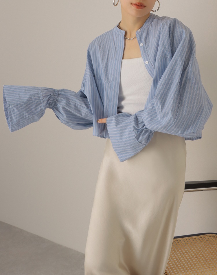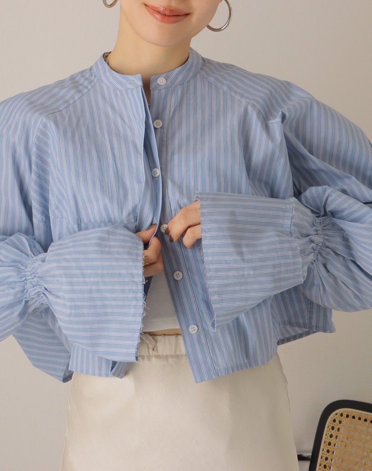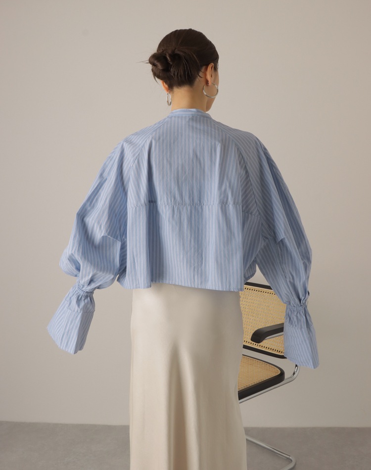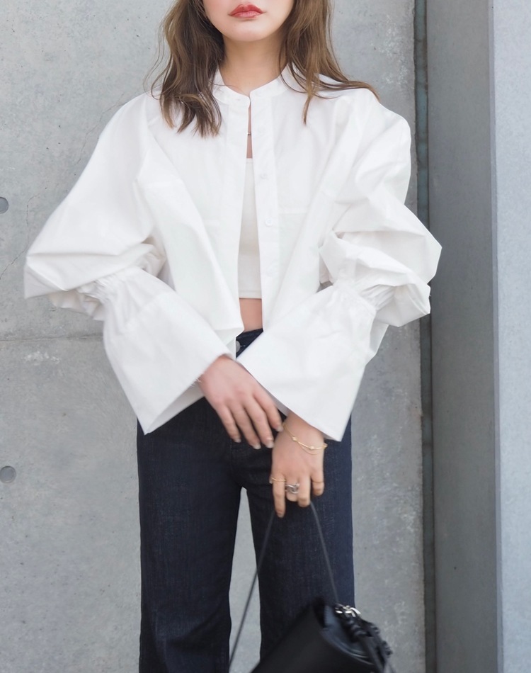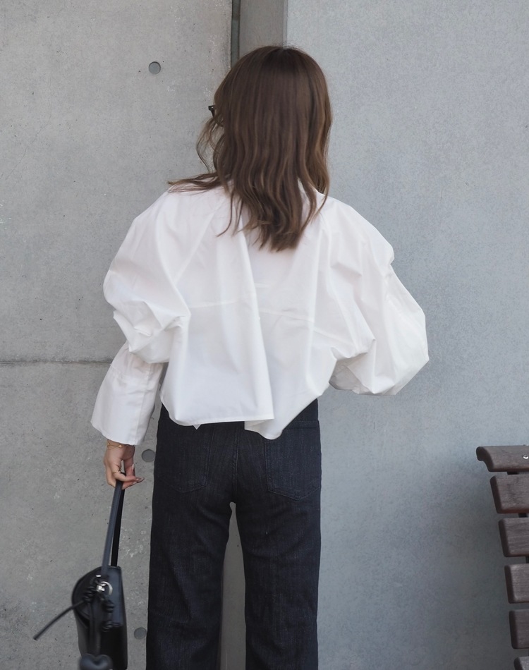 クロップド丈×ボリュームスリーブのバランスがスタイルアップしてみせてくれるシャツ。