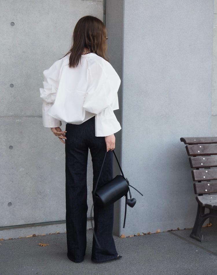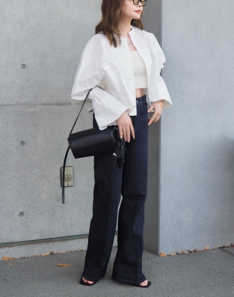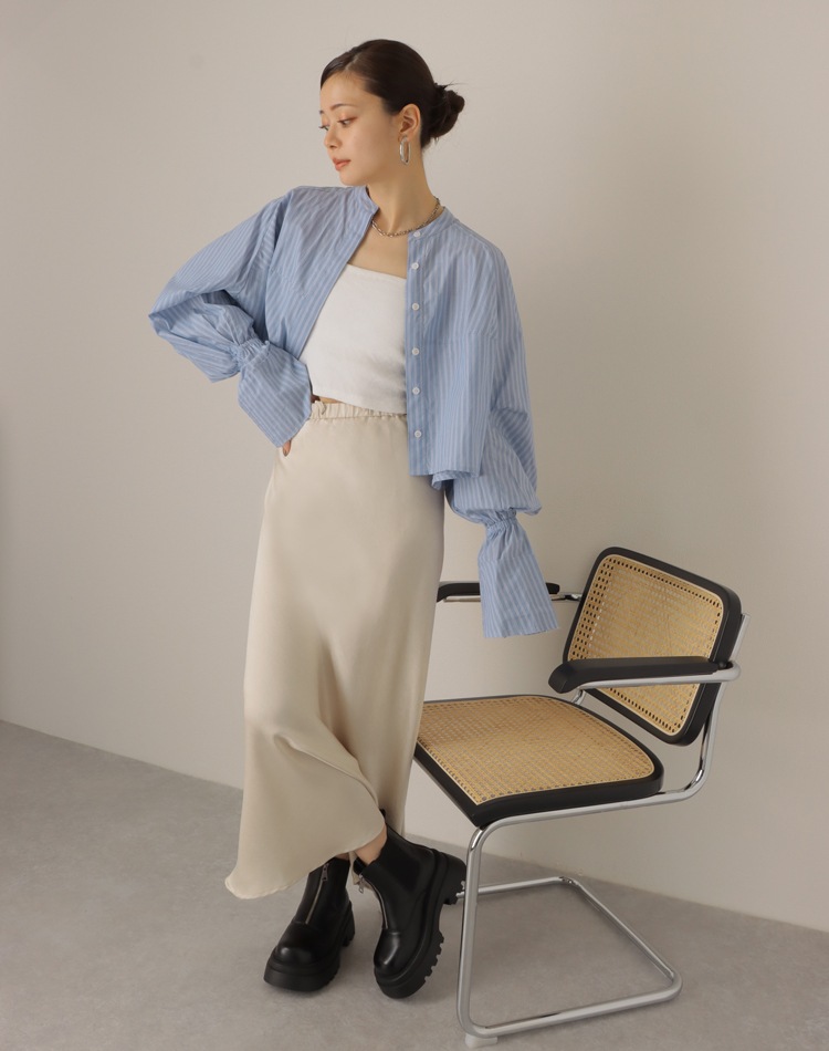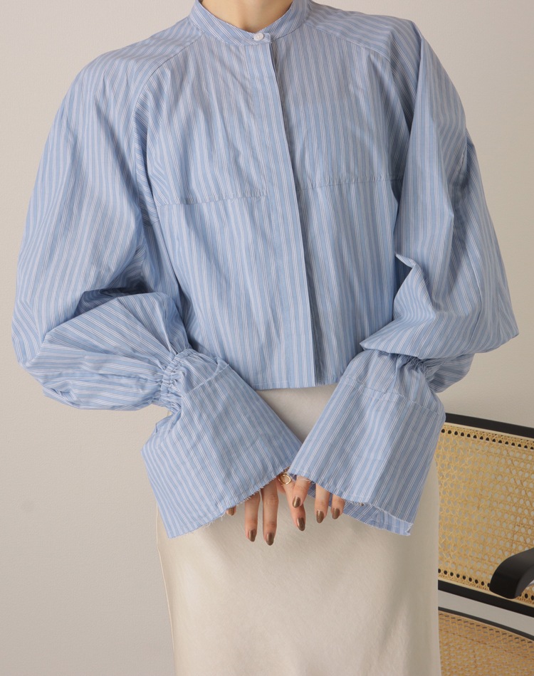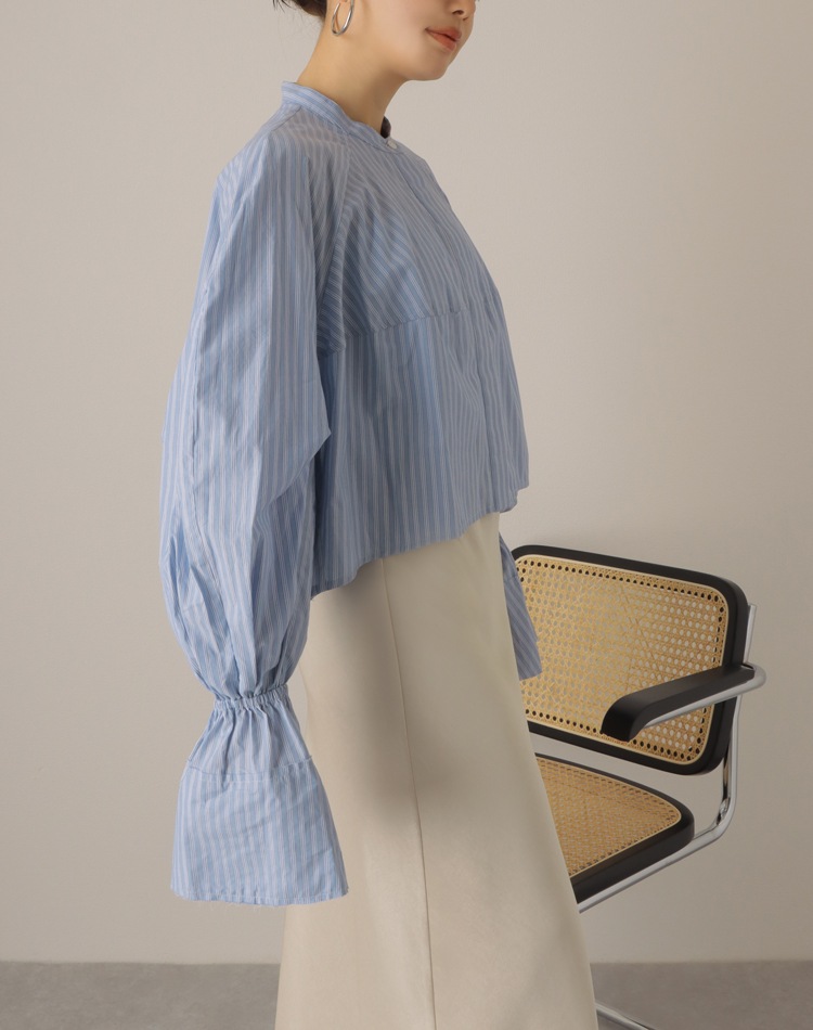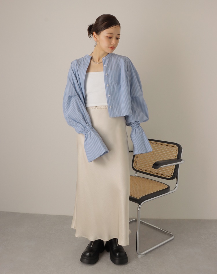 クロップド丈×ボリュームスリーブのバランスがスタイルアップしてみせてくれるシャツ。