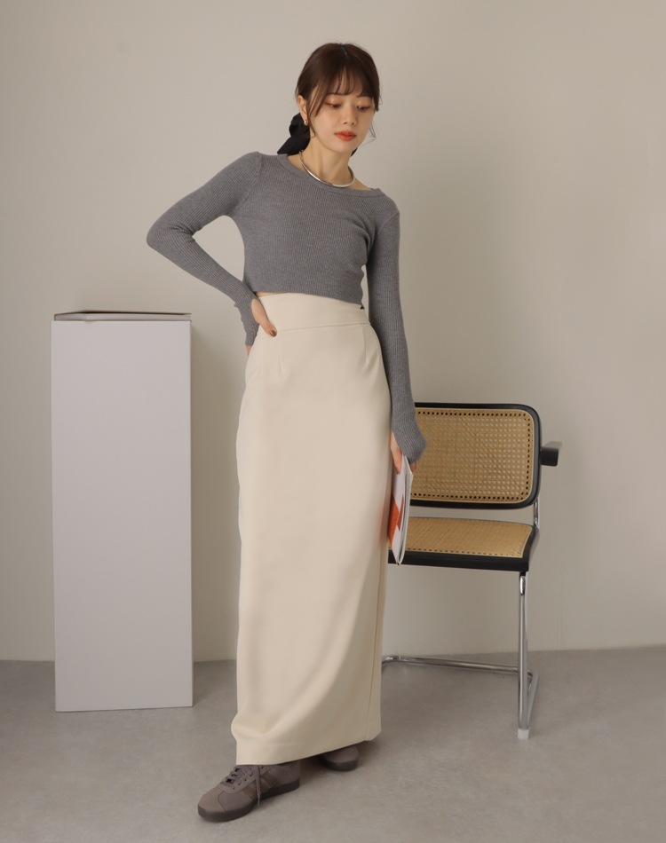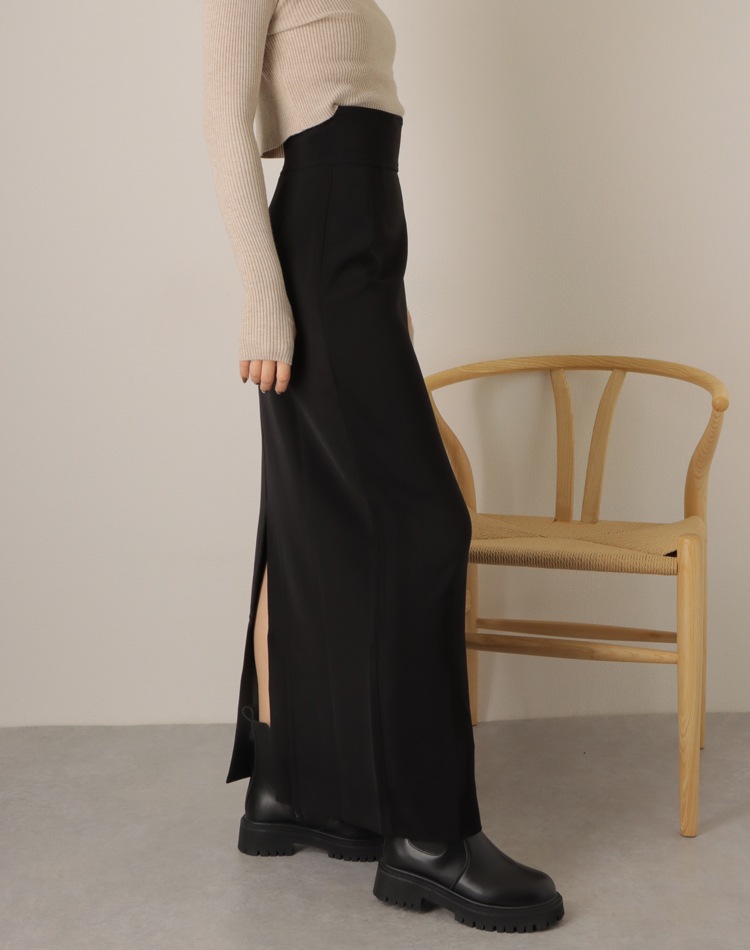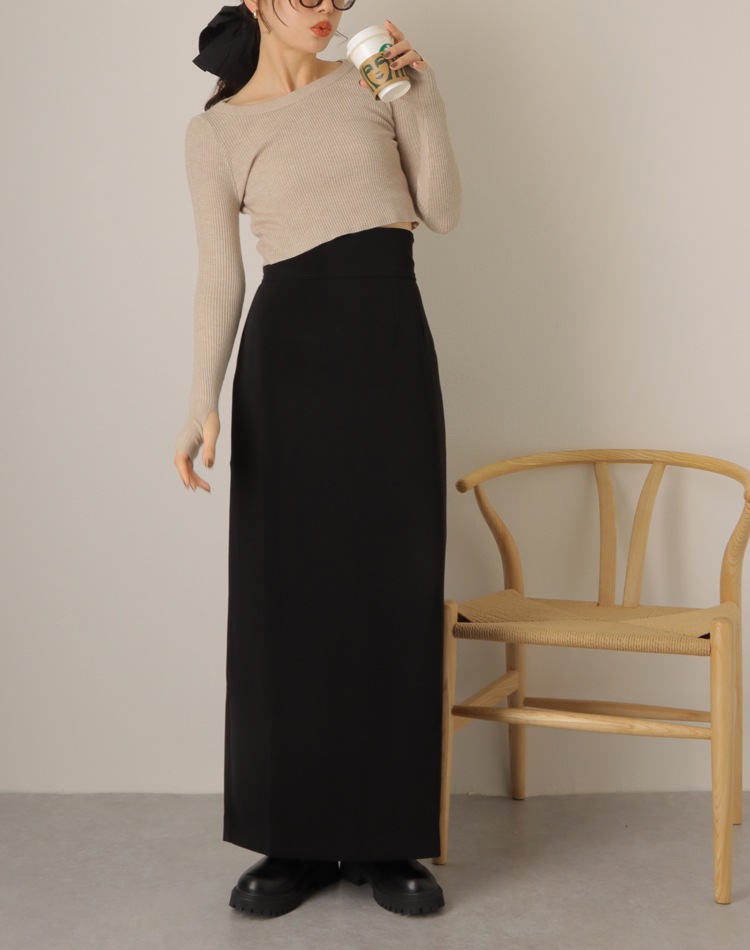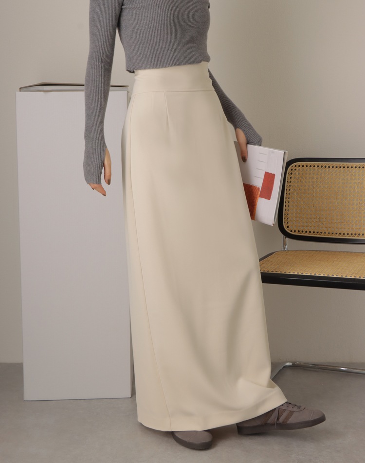 inverted pleats ribbon long skirt