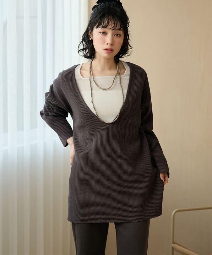 デニムでカジュアルダウンしたデイリーな着こなし、ロングニットスカートを合わせたモードな着こなしのほか、キャミソールワンピースにレイヤードするなど、幅広いコーディネートをお楽しみいただけます。