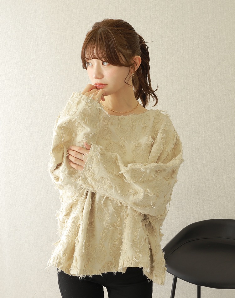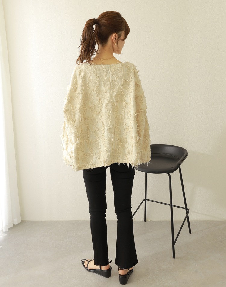 オーバーサイズのシルエットはドルマンスリーブとの組み合わせで、よりリラックスした表情に。