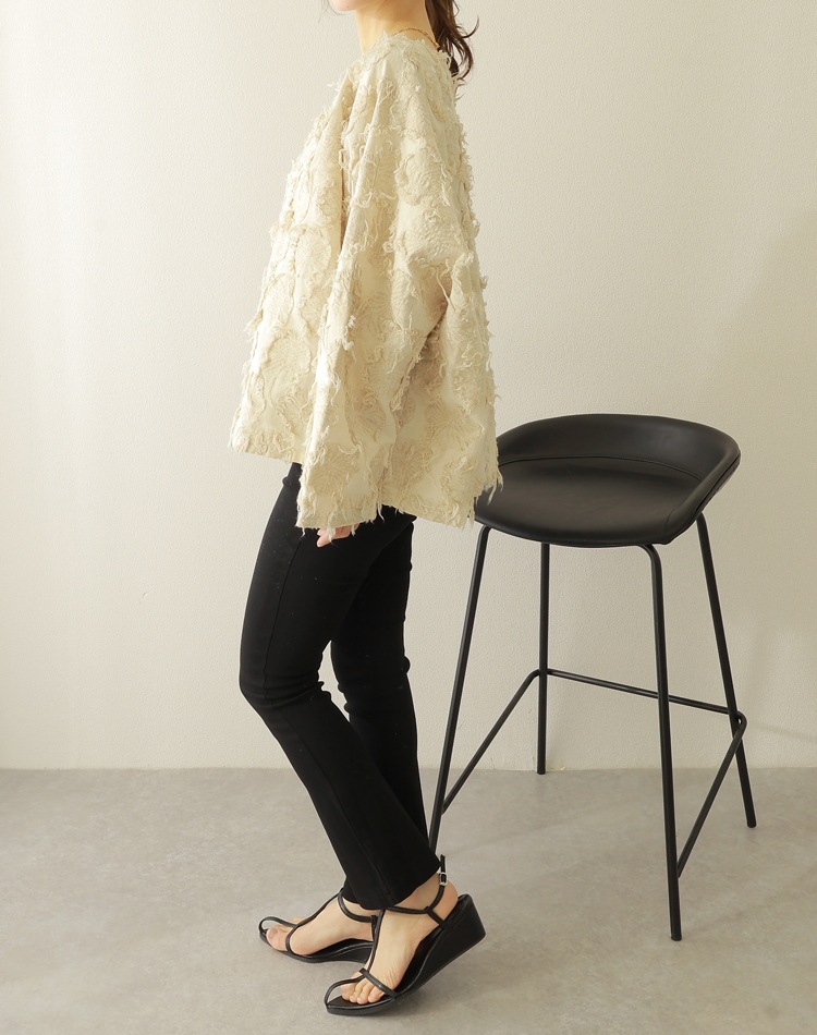 着丈を短めに設定することでボトムとのバランスが取りやすく、バックスタイルもセンター切り替えによってスッキリと見えるように仕上げました。