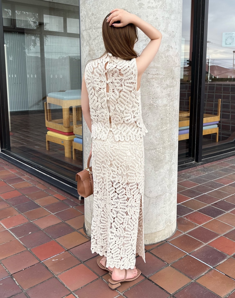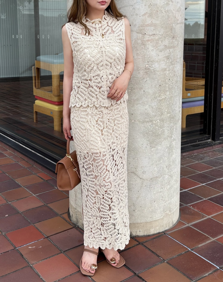 botanical crochet camisole long dress