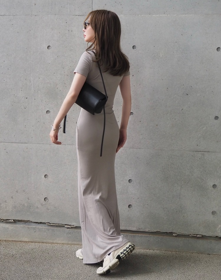 cotton linen back open long dress