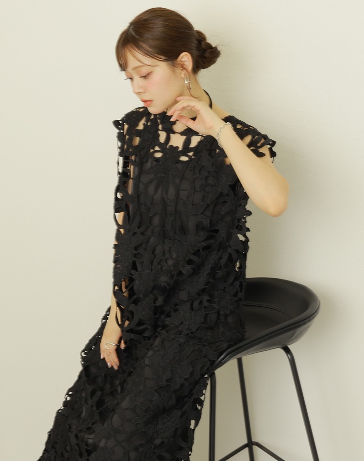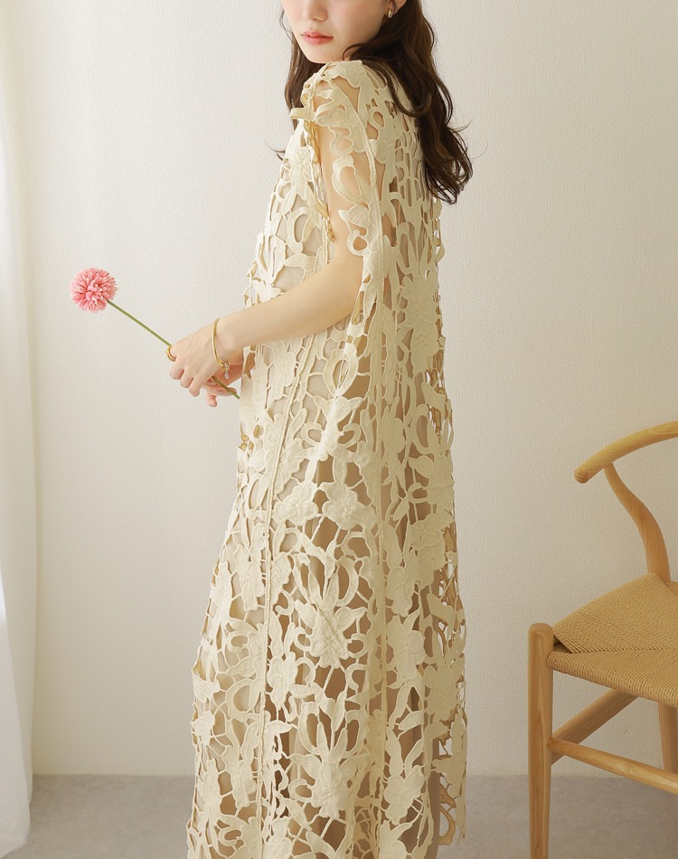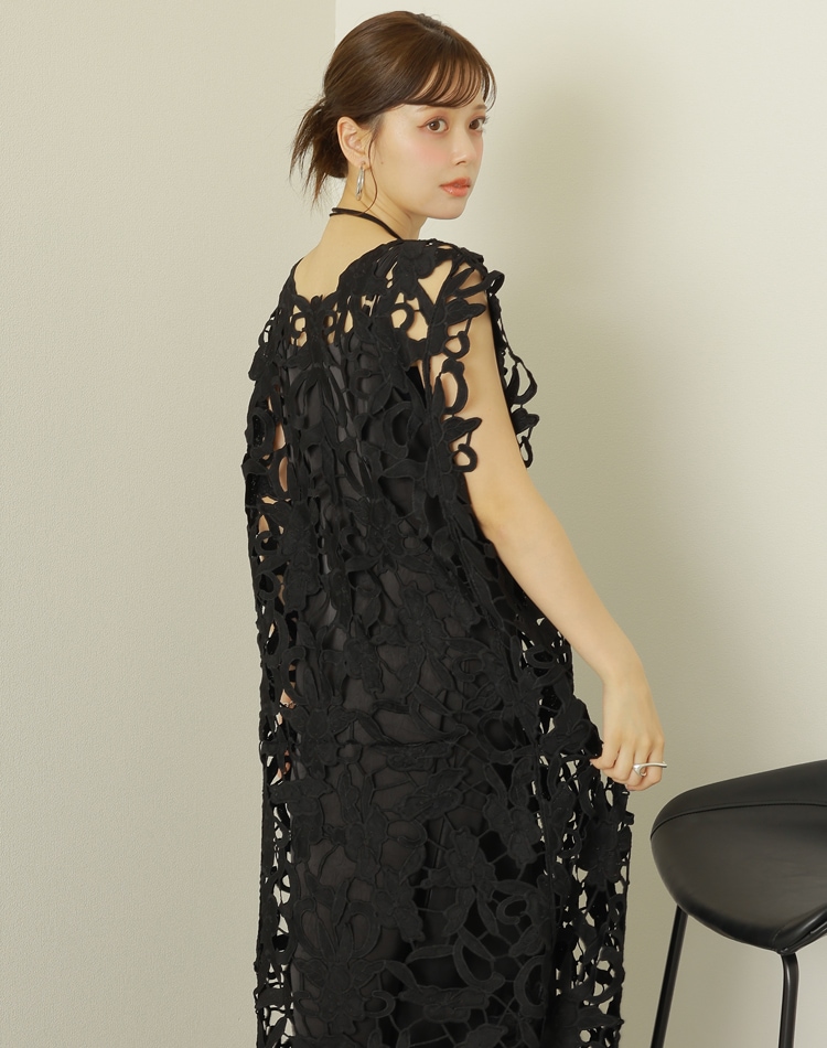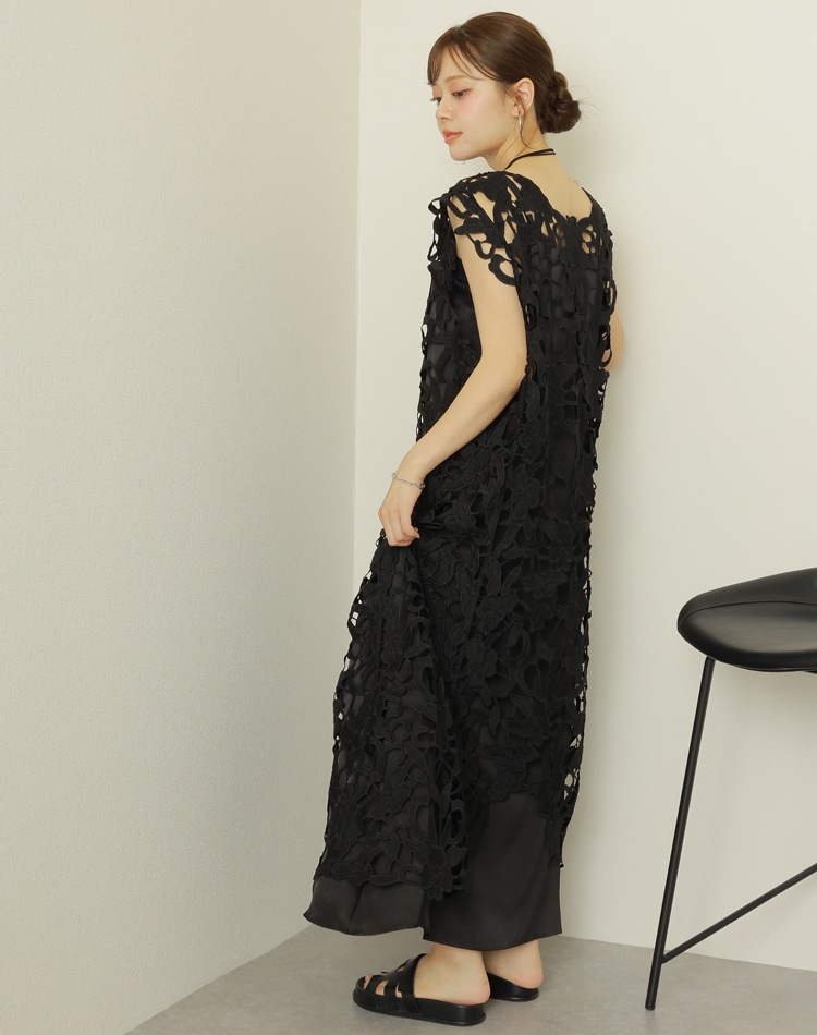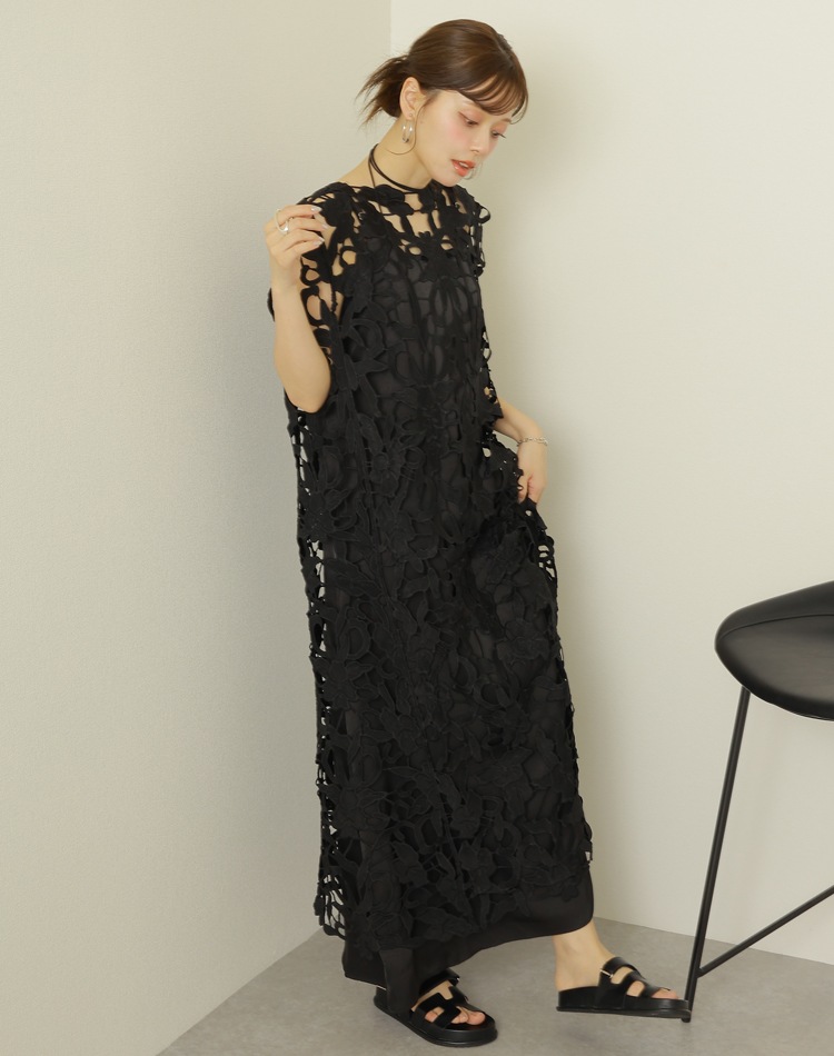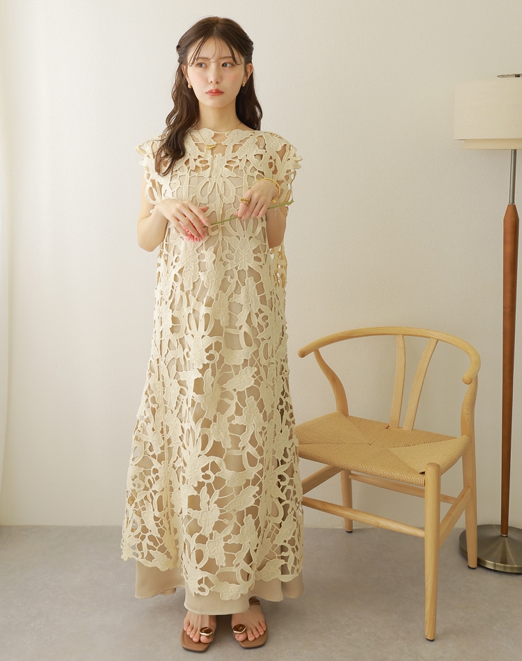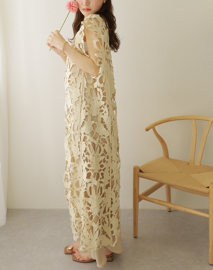 botanical crochet camisole long dress