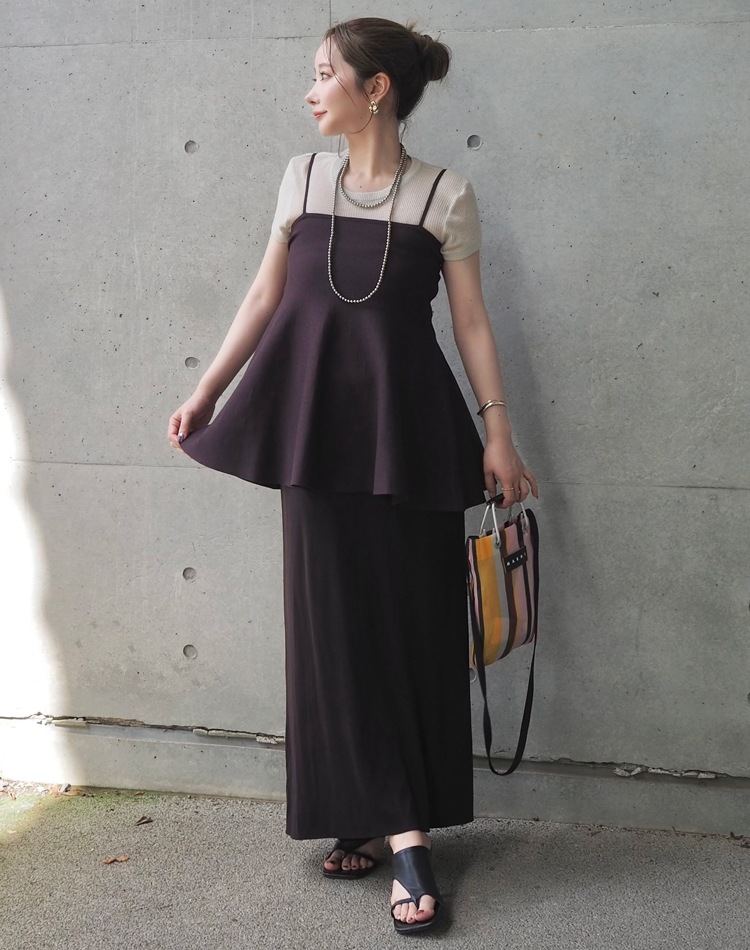 flare peplum camisole skirt setup