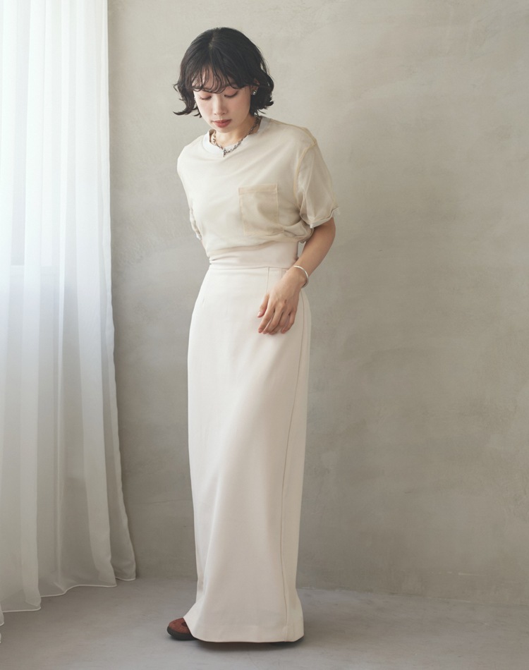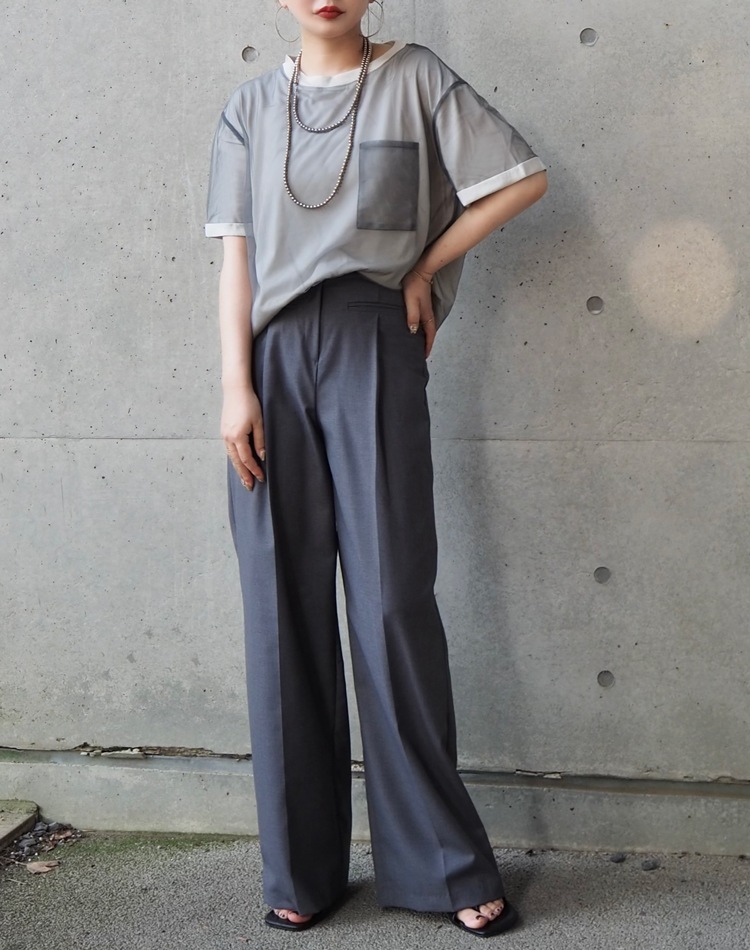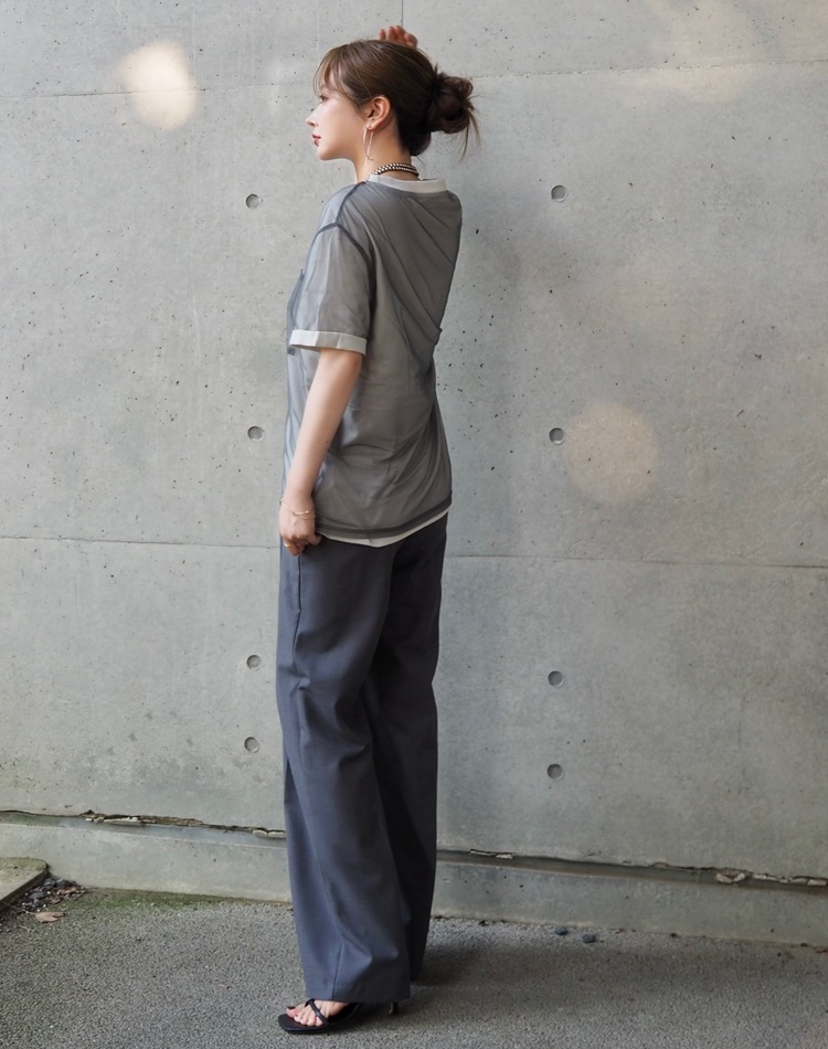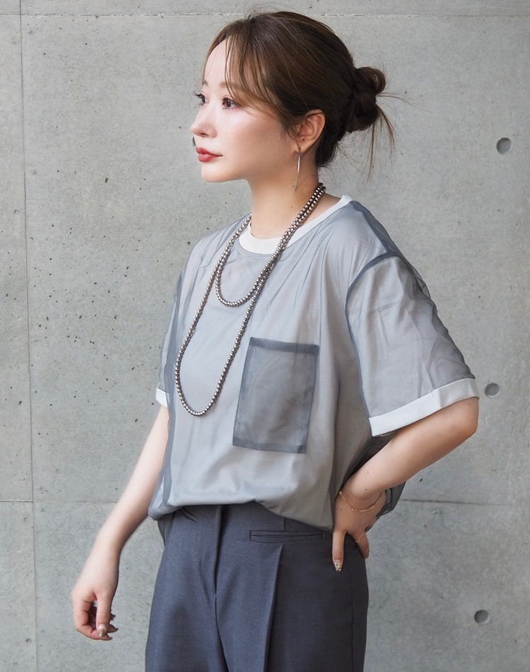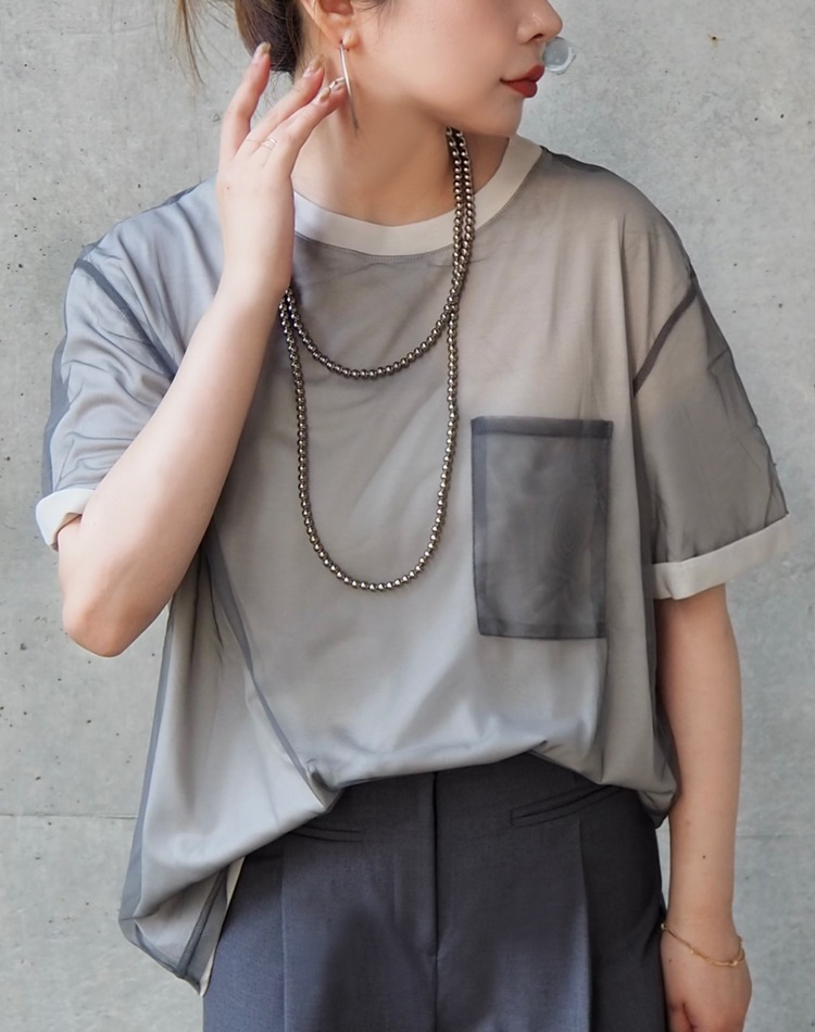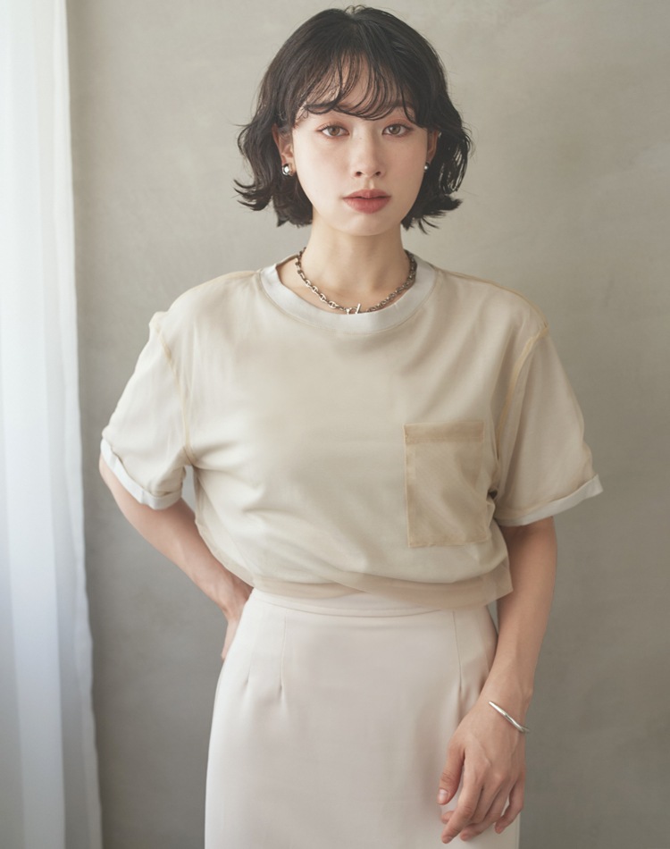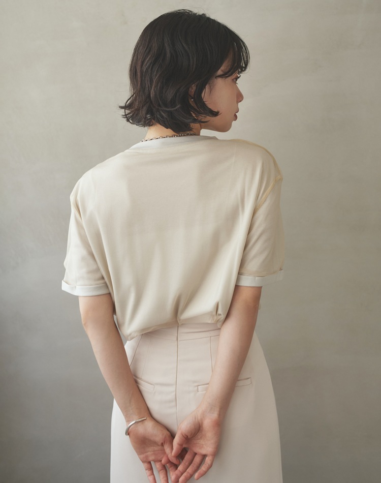 シアー素材をふわっと重ねたニュアンスTシャツ。