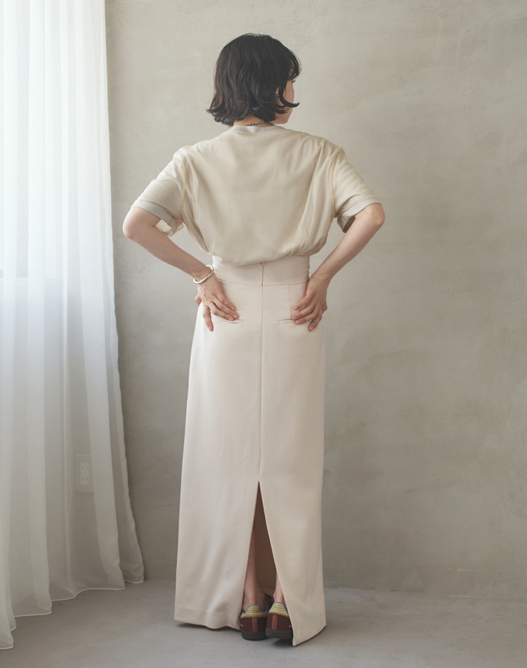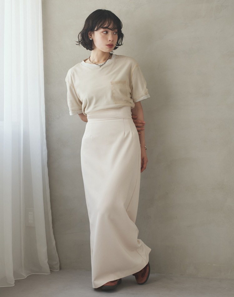 カジュアルながらもラフに転ばず、スレンダーなロングスカートや、エッジの効いたモードなボトムとも好相性です。