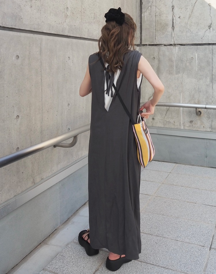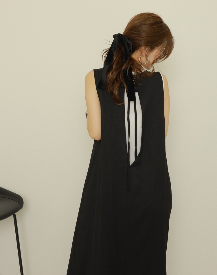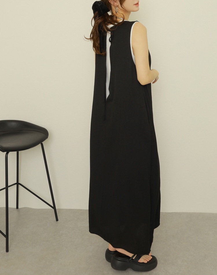 cotton linen back open long dress