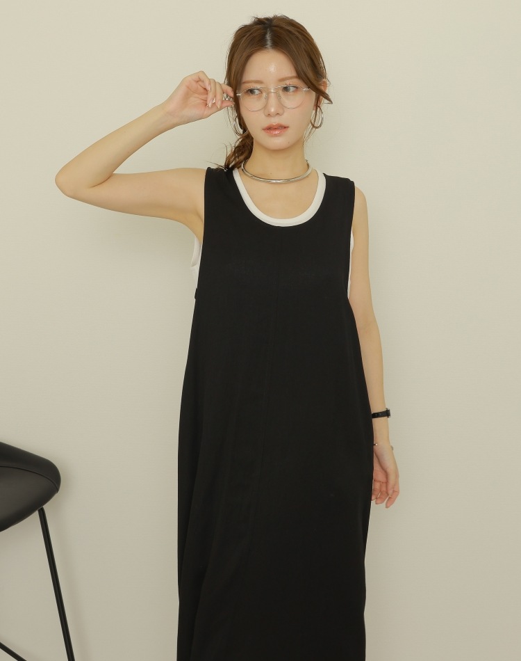 botanical tuck sleeveless long dress