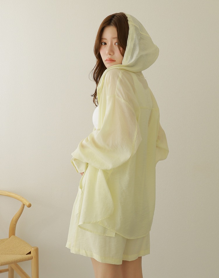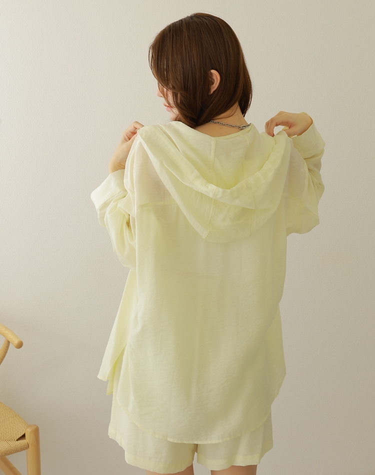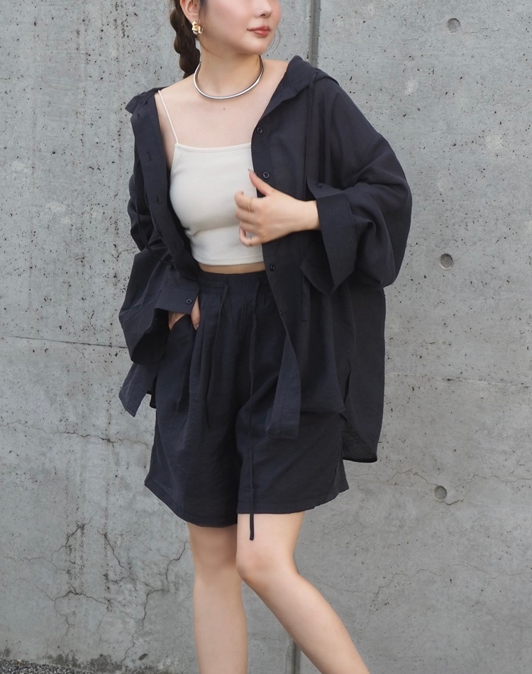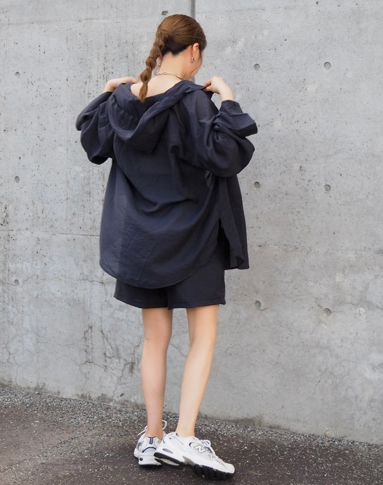 フード付きのオーバーサイズシャツは、羽織としても重宝する前開きデザインです。