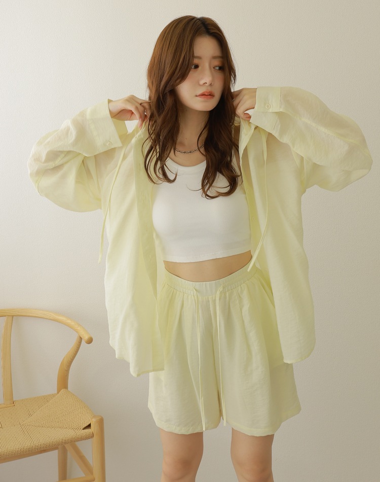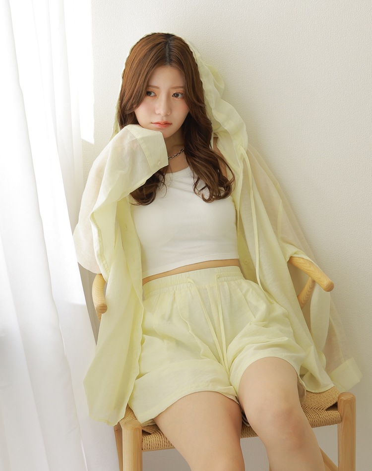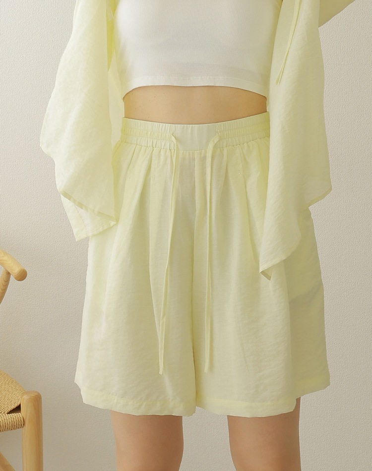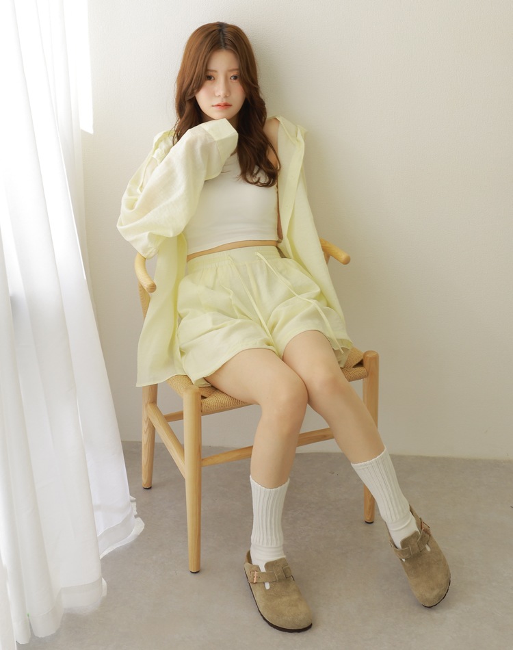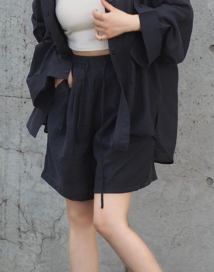 ショートパンツはウエストゴムのラクな穿き心地で、短すぎないので安心感も。