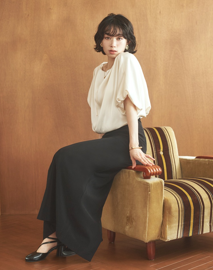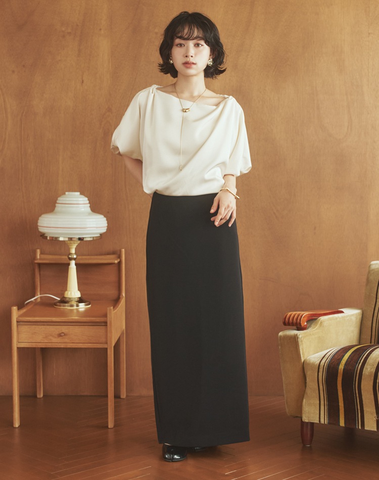 自然と生まれるドレープがスタイリングに動きをプラスし、華やかな印象に。