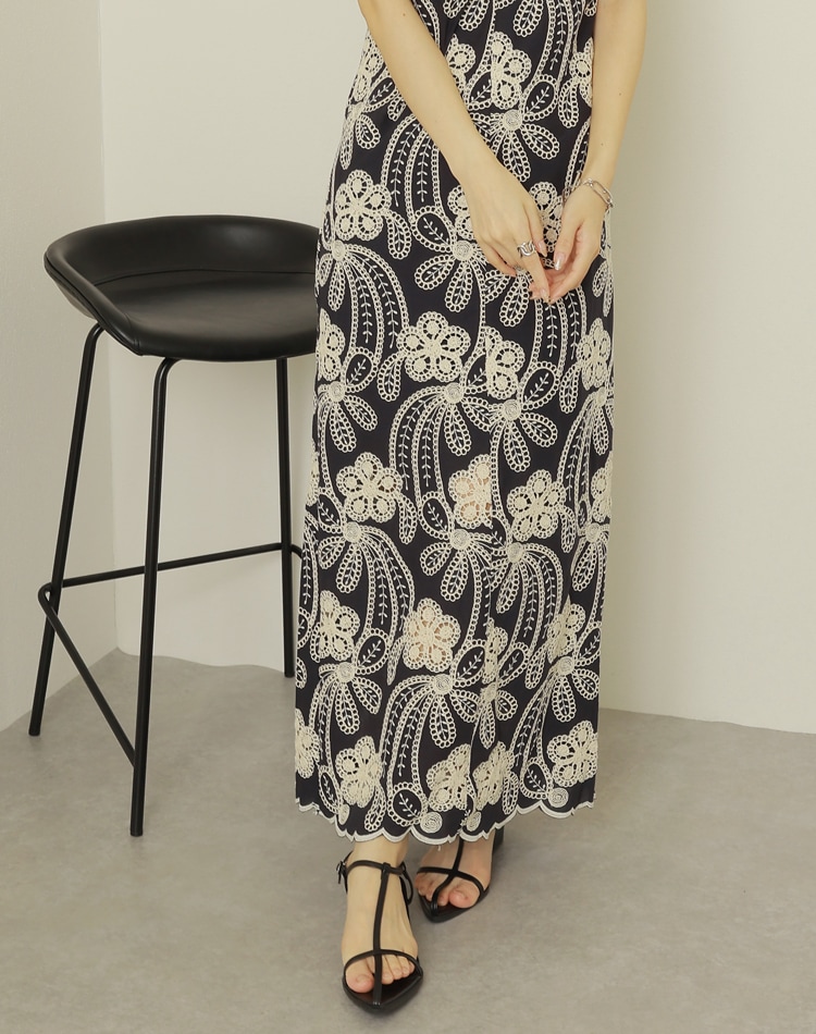 botanical tuck sleeveless long dress