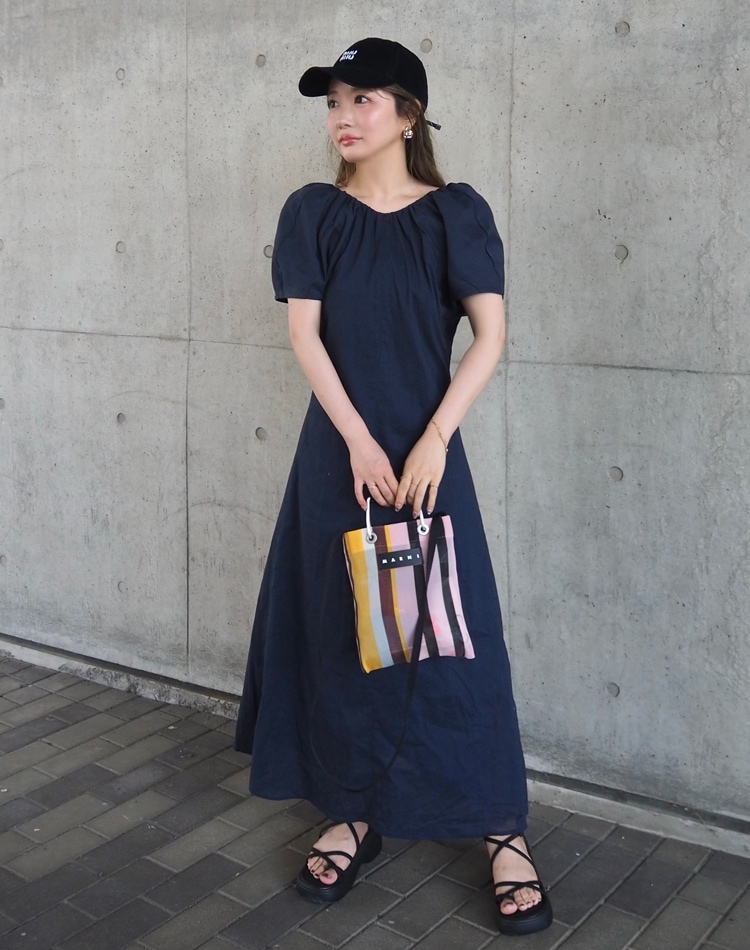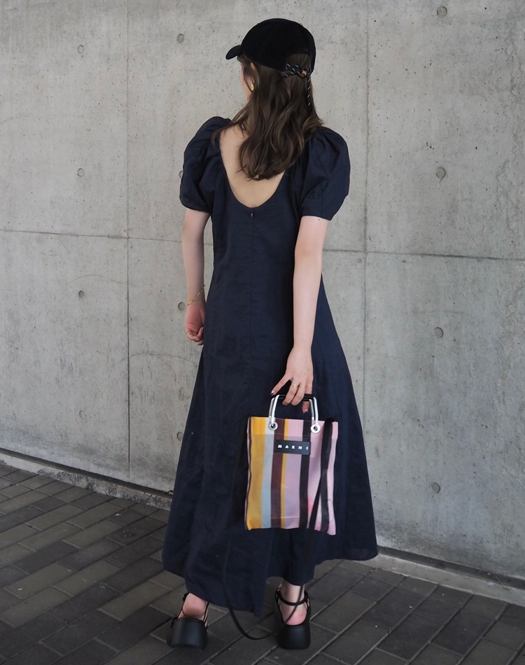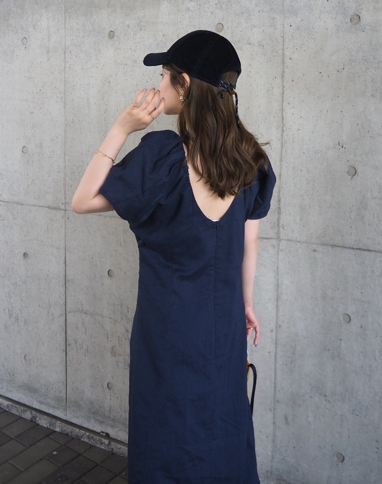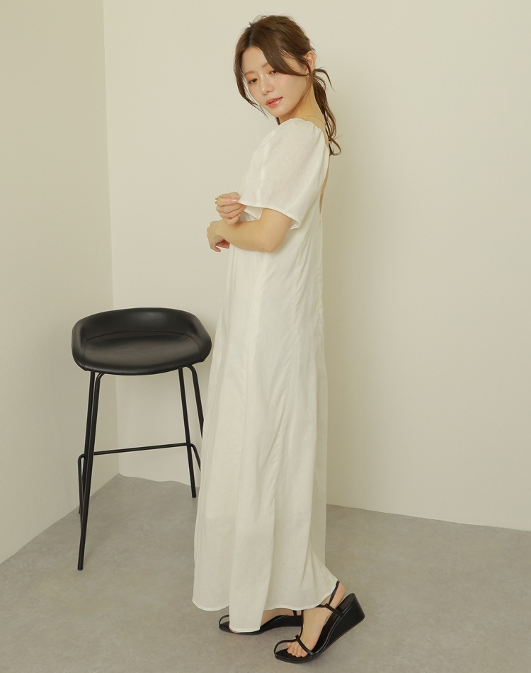 linen american sleeve long dress