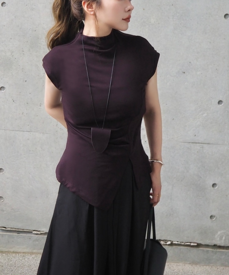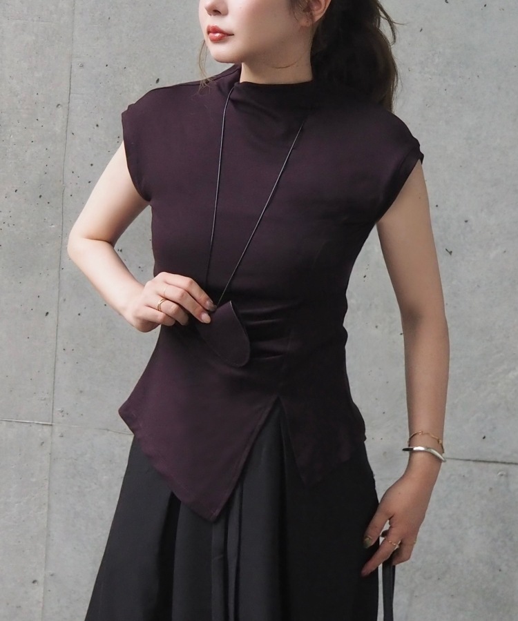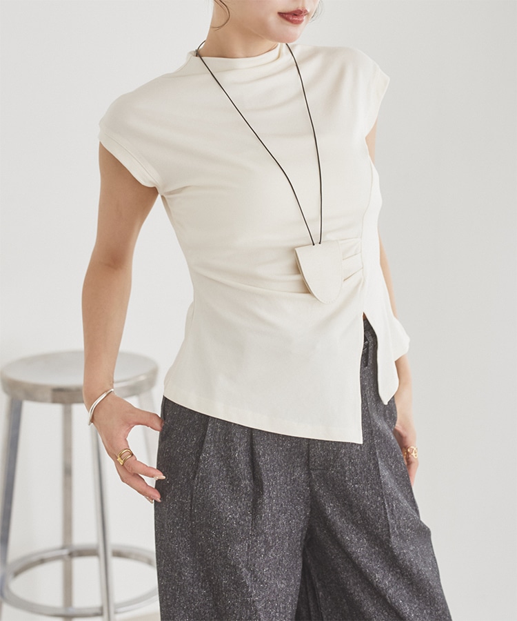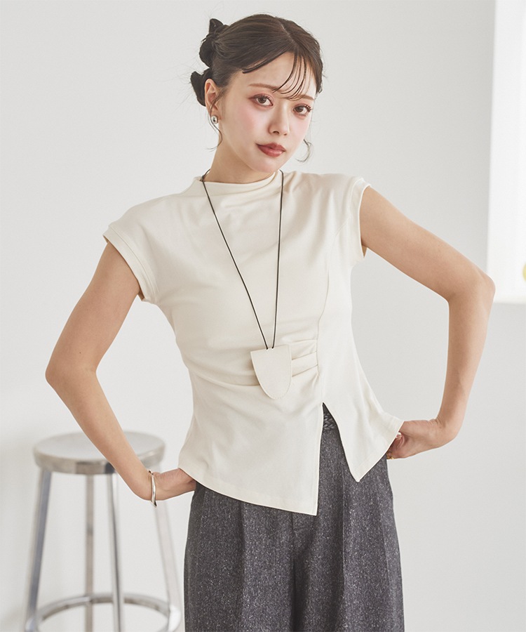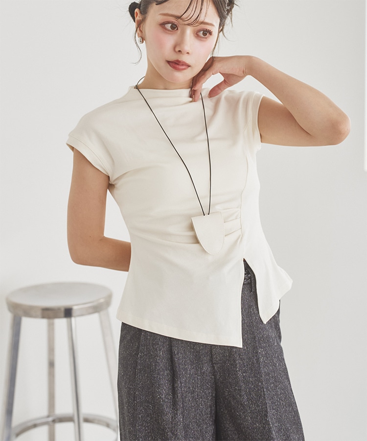 velour off neck side gather tops