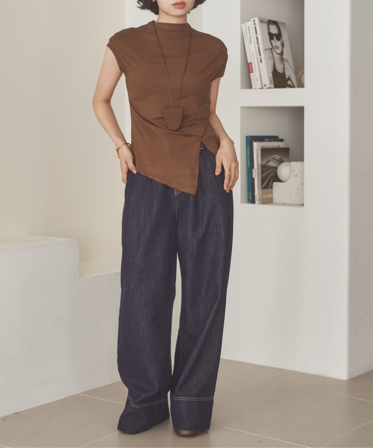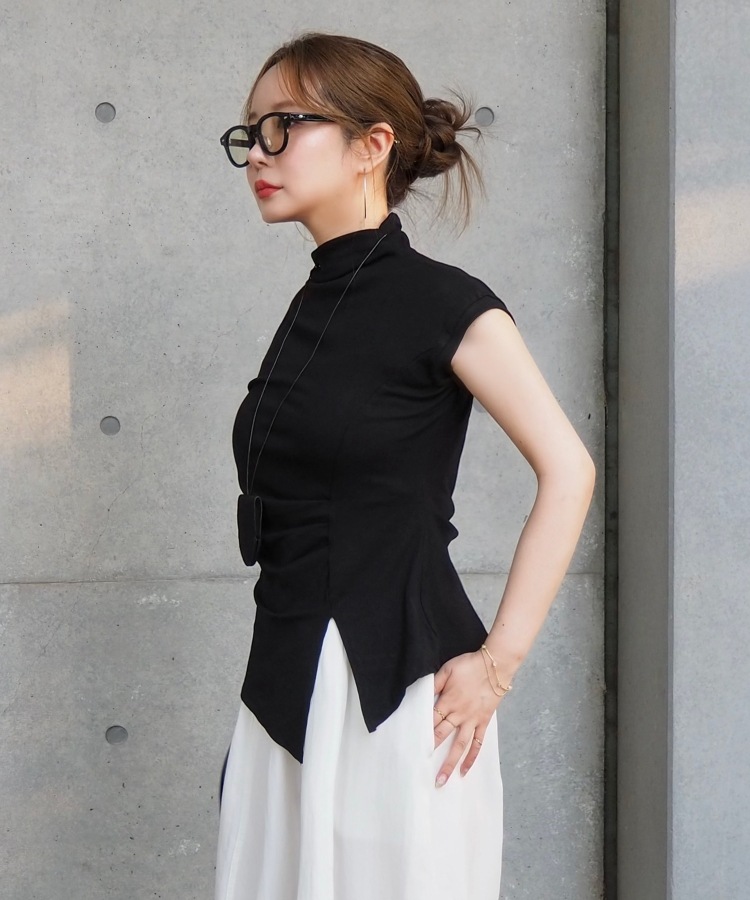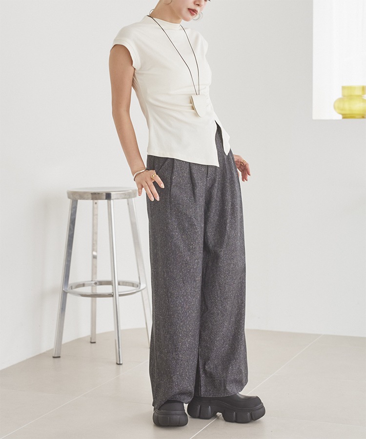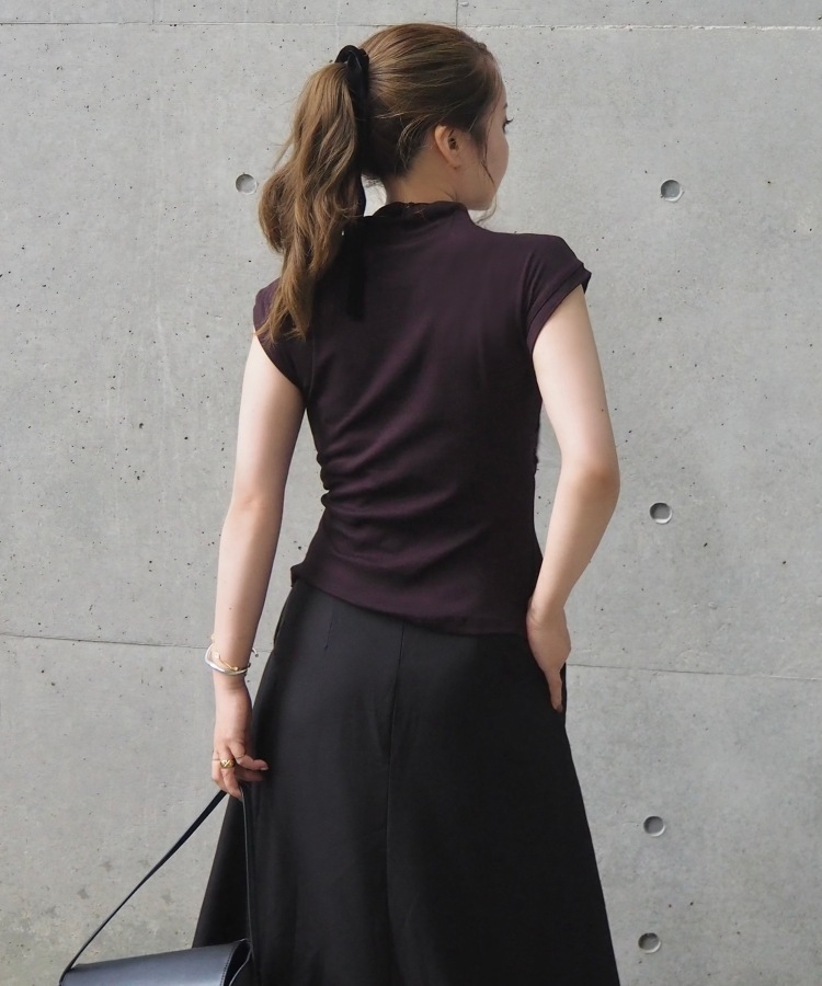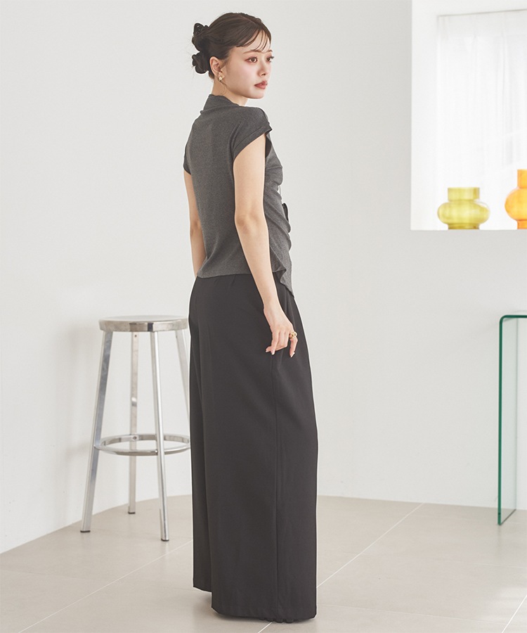 velour off neck side gather tops
