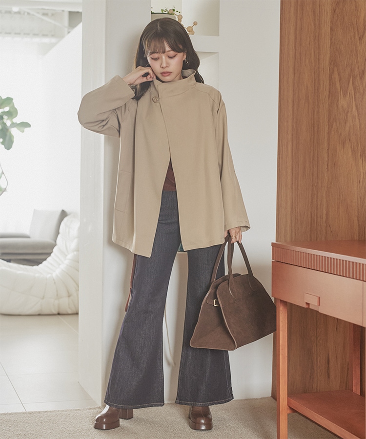 stand collar boa zip up blouson
