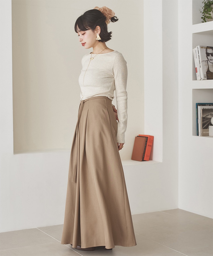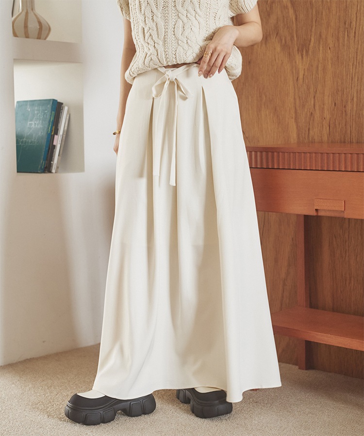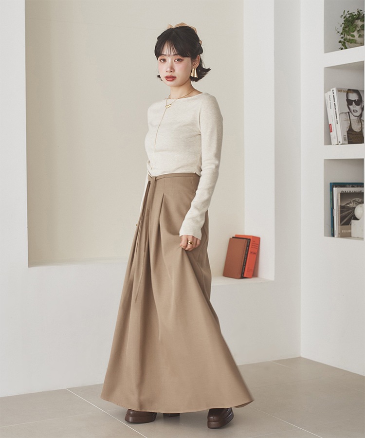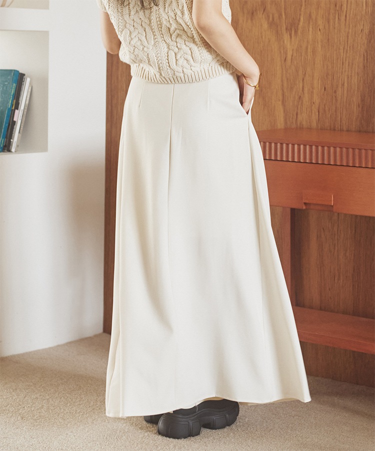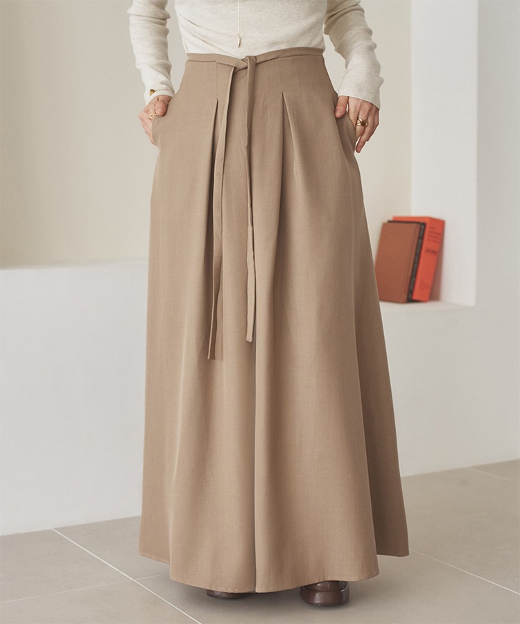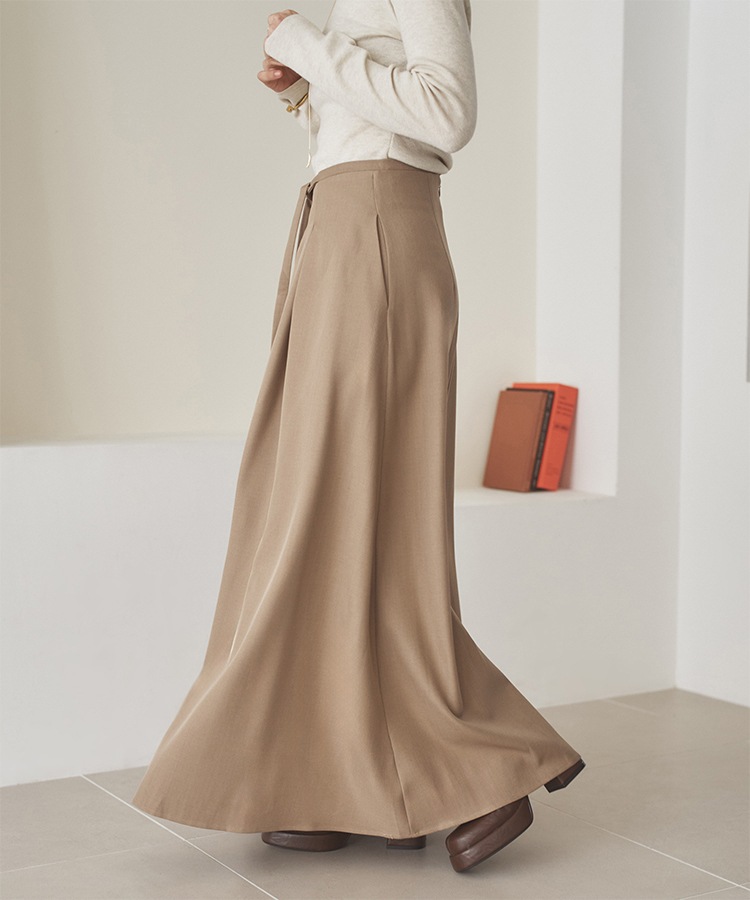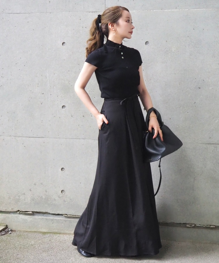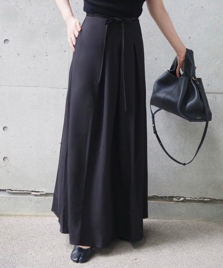 gather balloon satin long skirt
