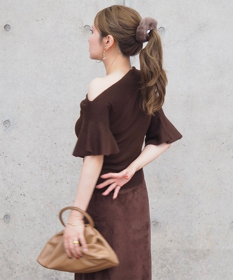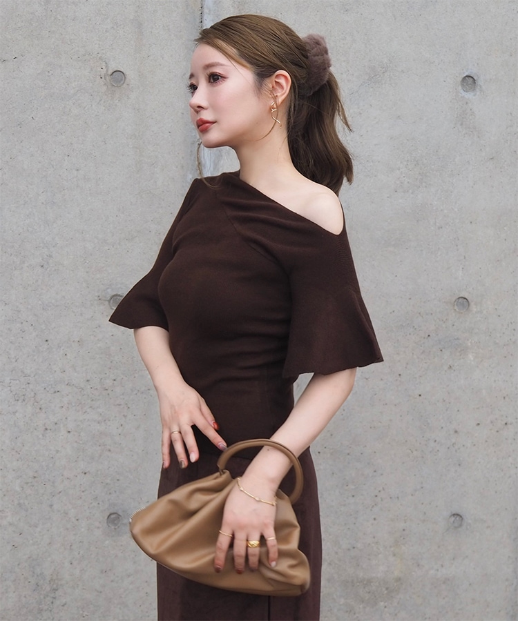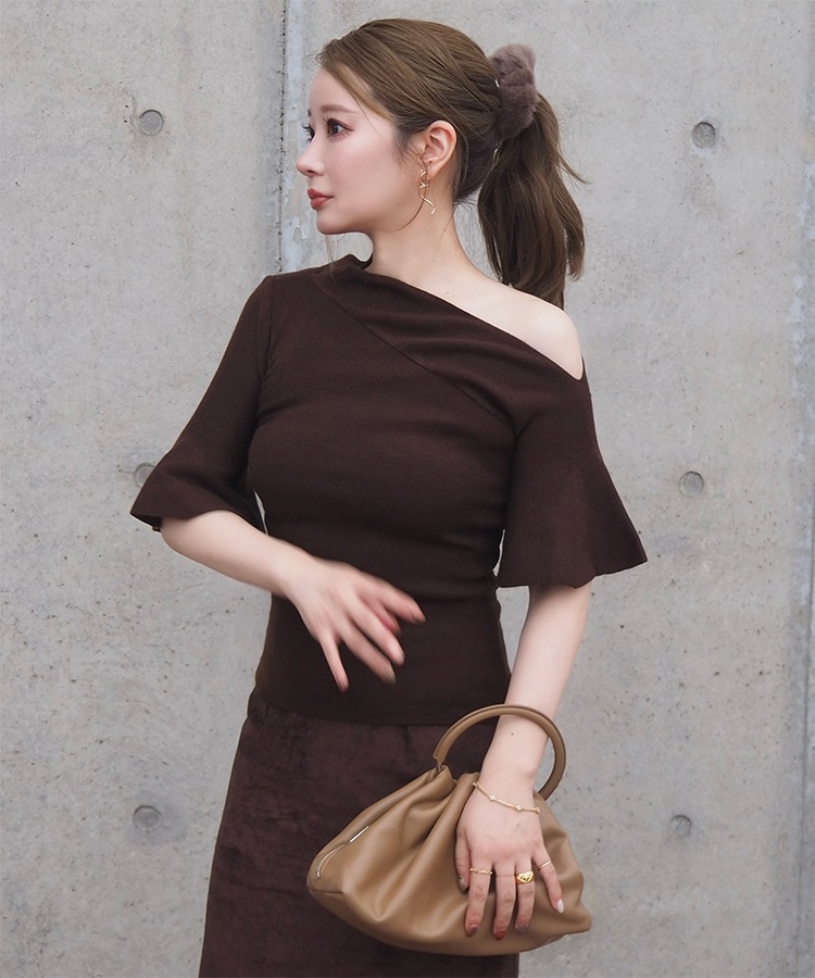 velour off neck side gather tops