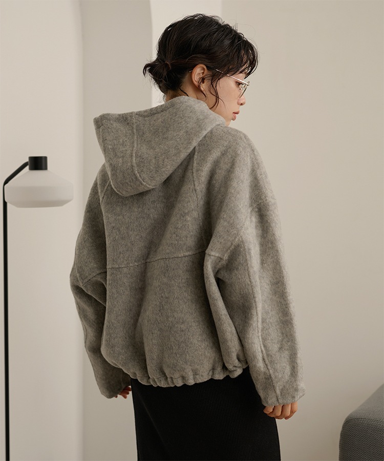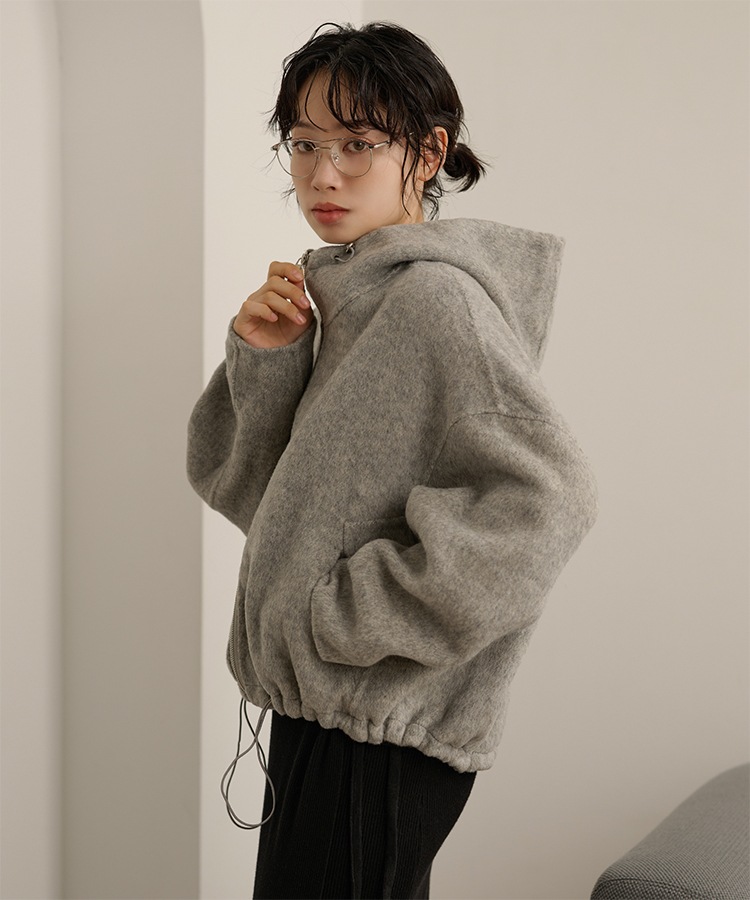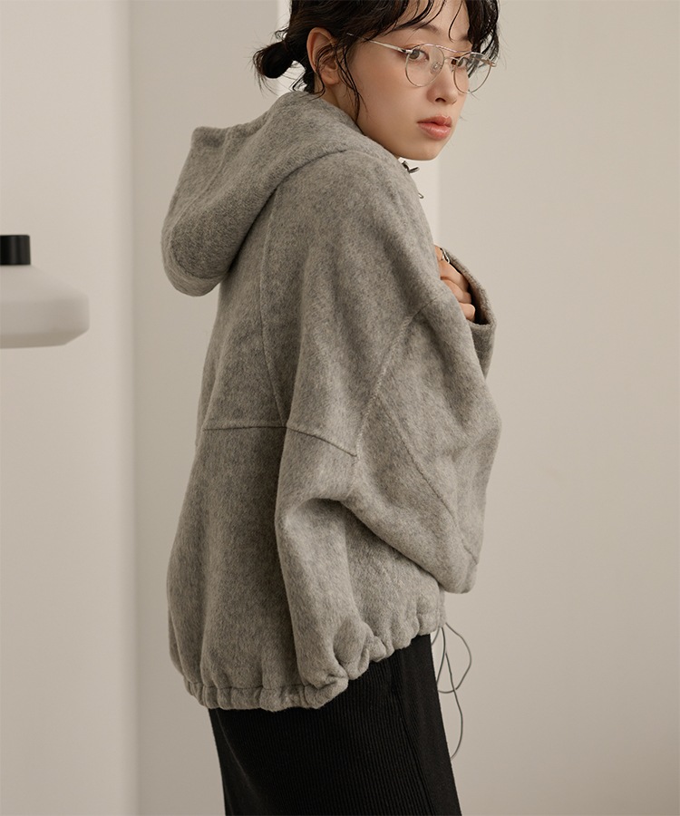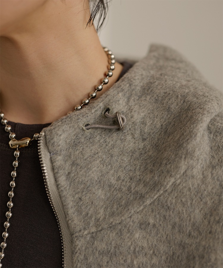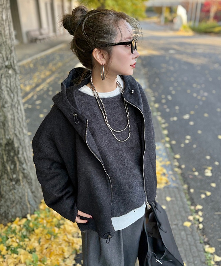 wool boa stand collar middle coat