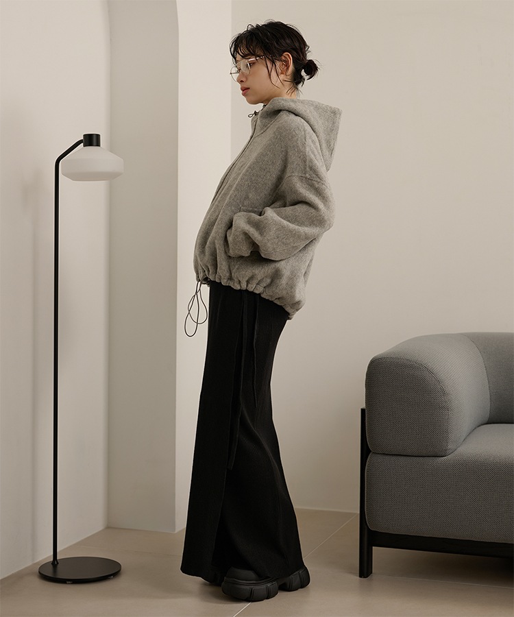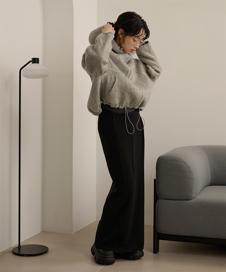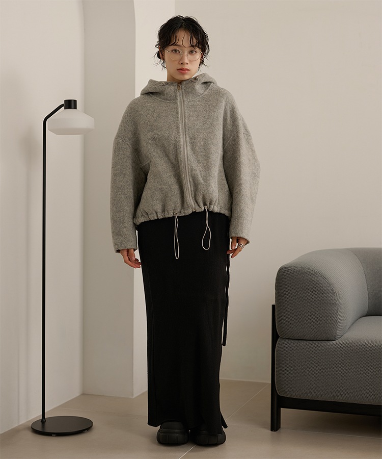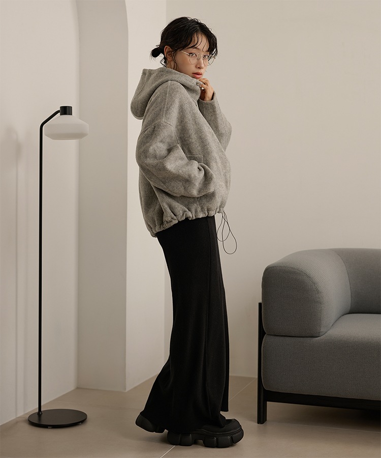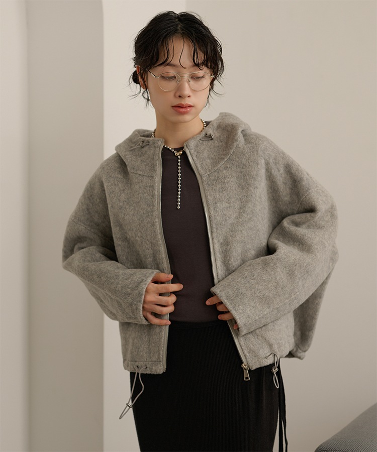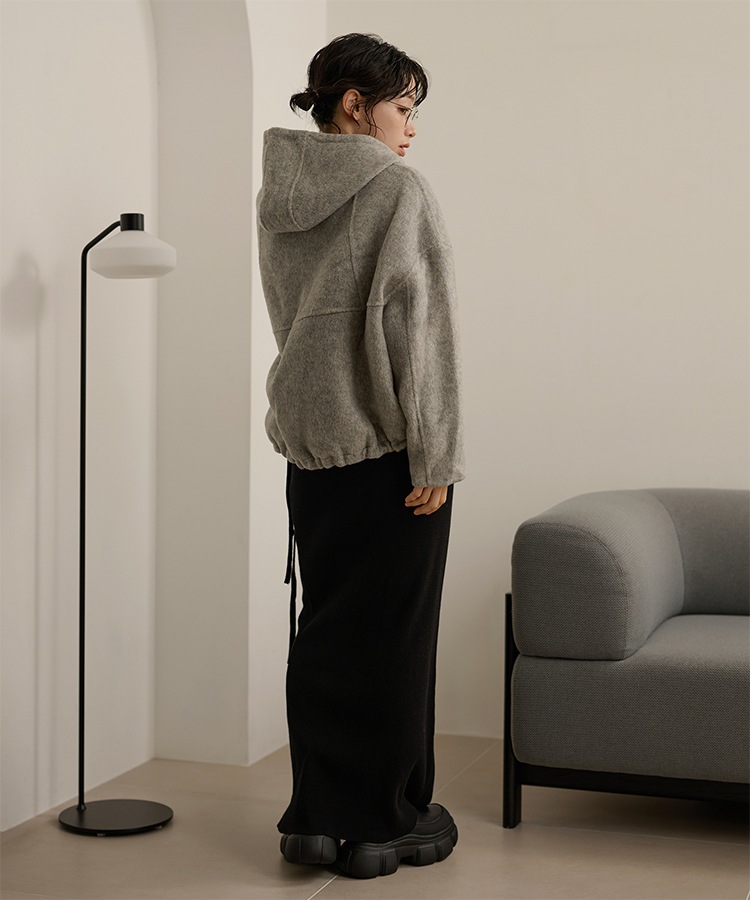wool boa stand collar middle coat