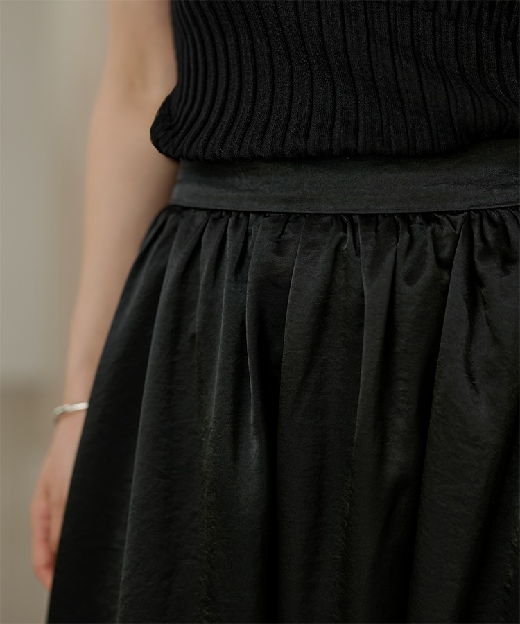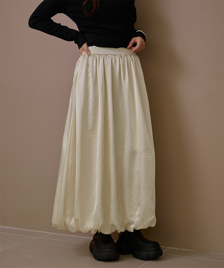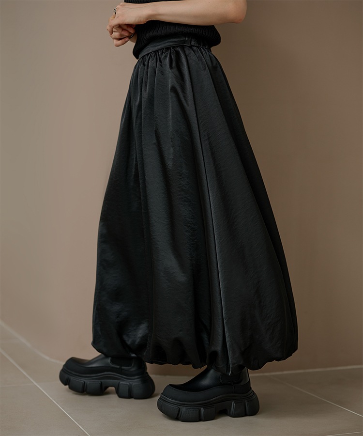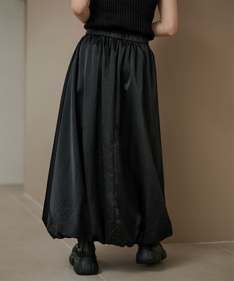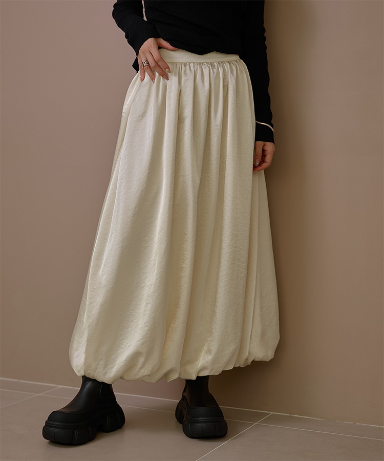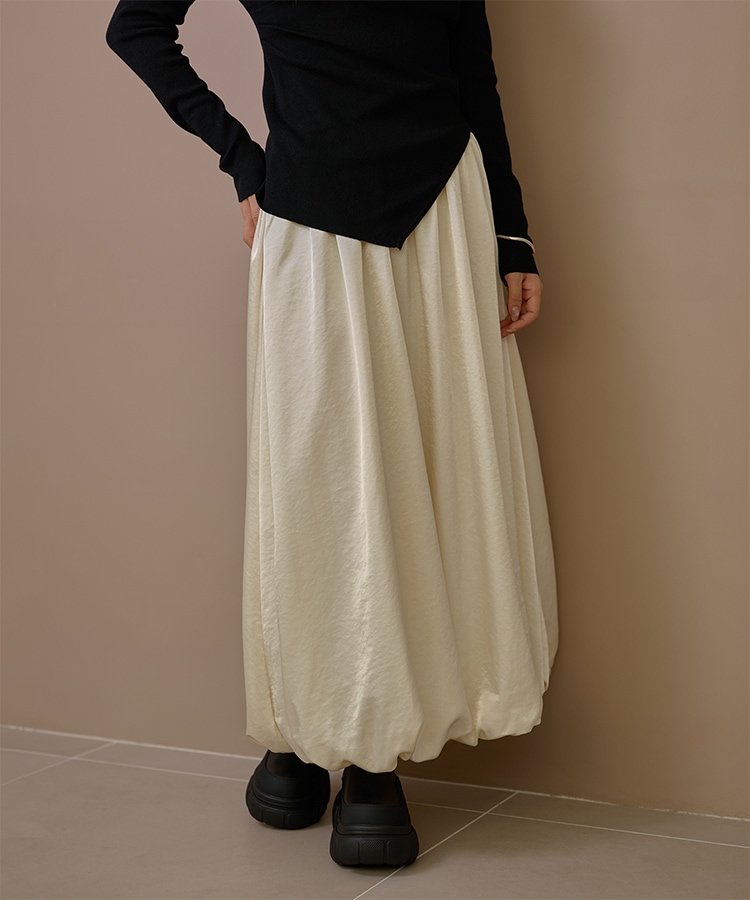 inverted pleats ribbon long skirt