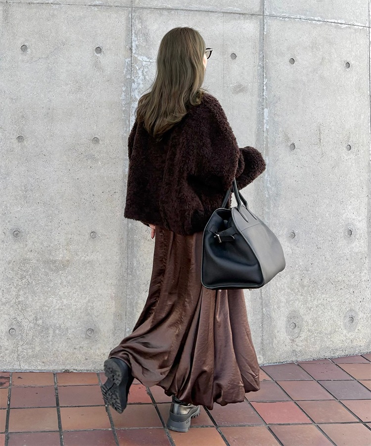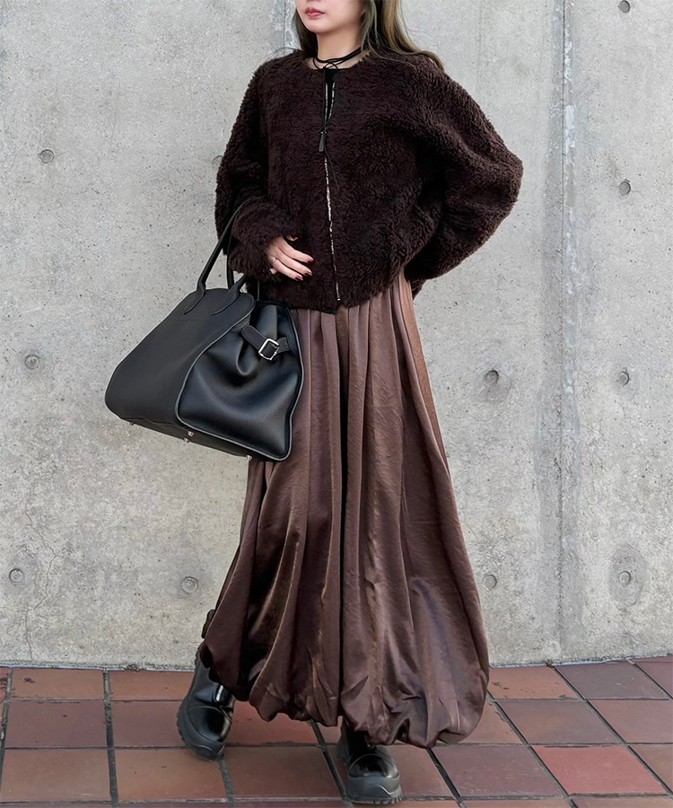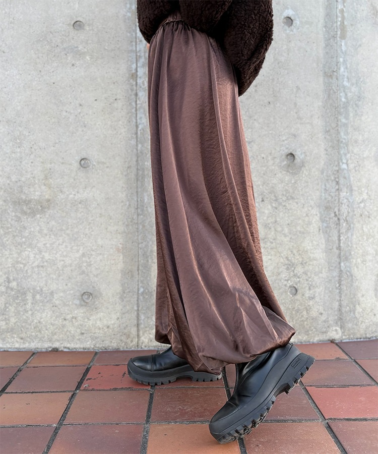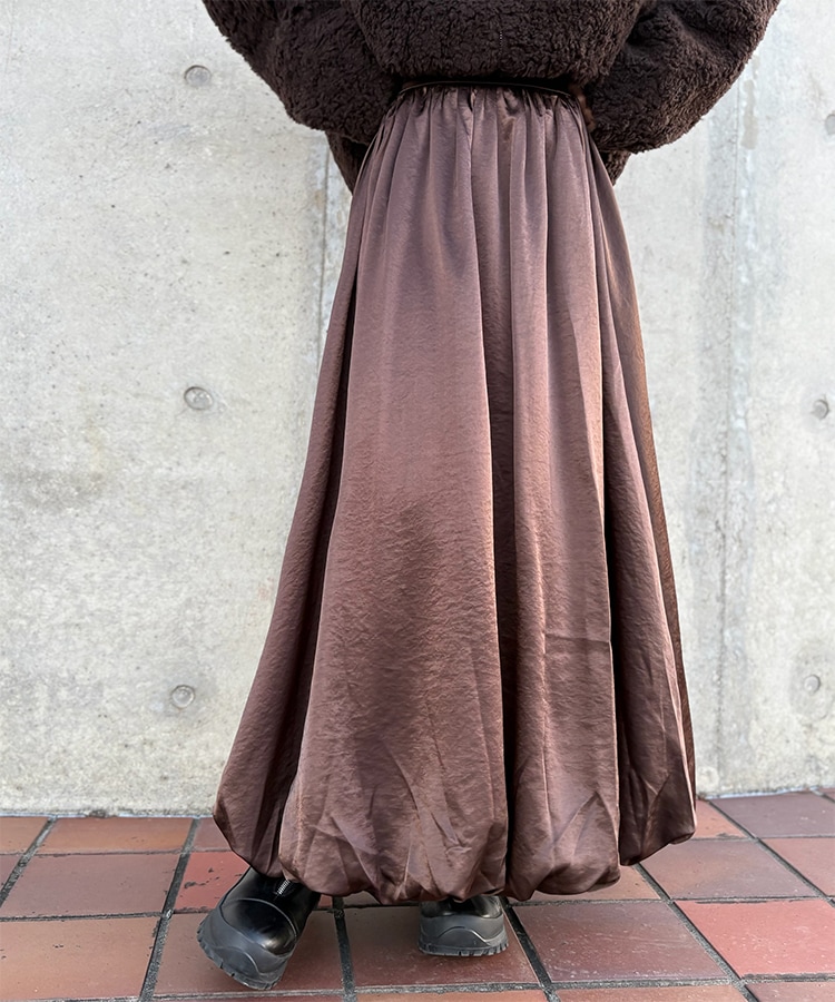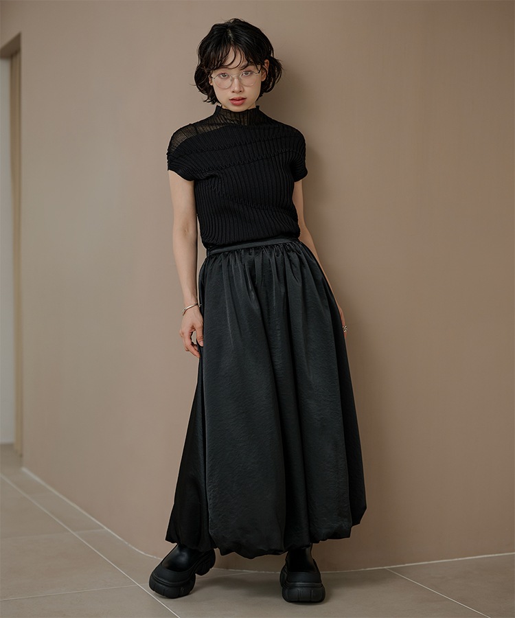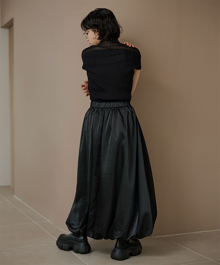 inverted pleats ribbon long skirt