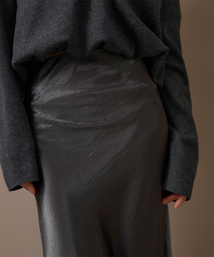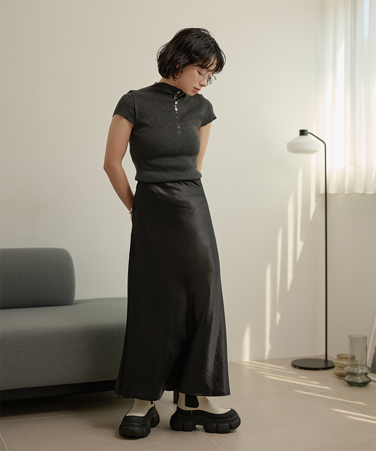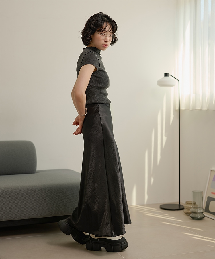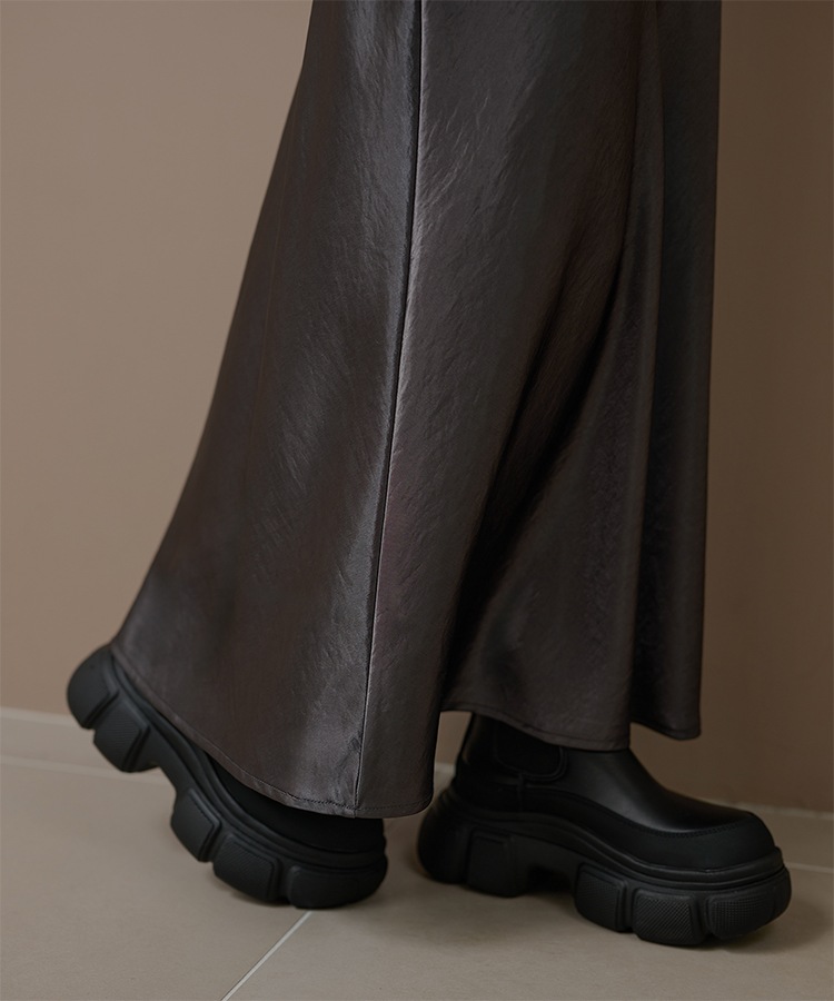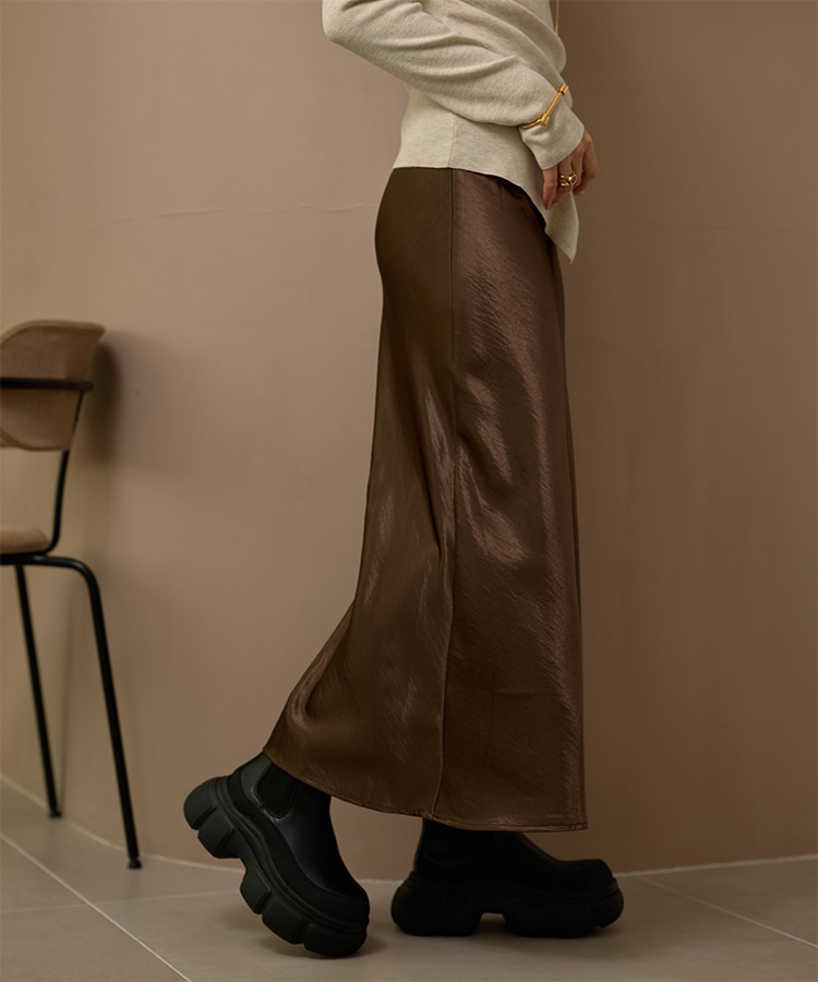 inverted pleats ribbon long skirt